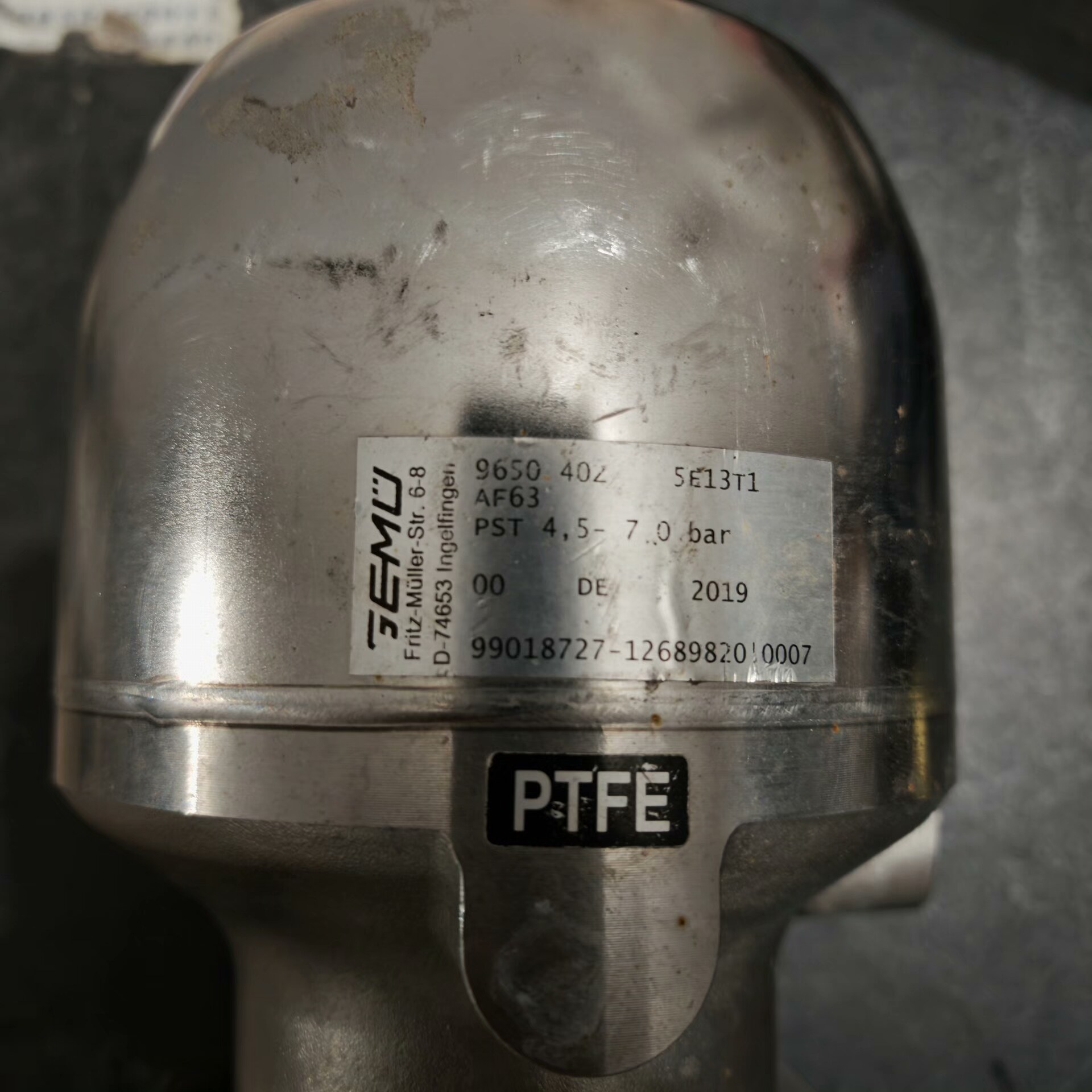 从图片中可以看到,该阀表面有轻微划痕,但整体状态良好,功能正常。标签上的信息清晰可见,确保了产品的可追溯性。此款隔膜阀广泛应用于化工、制药、食品加工等行业,能够有效控制液体或气体的流动,确保生产过程的安全与高效。