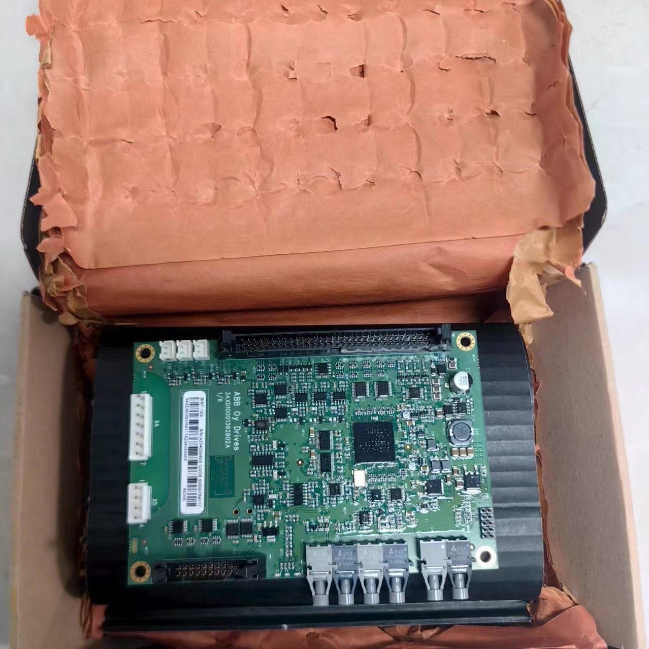 本产品为ABB公司生产的原装BINT-12G控制板卡,型号为3AXD50000769117,序列号A2040354EE,专用于工业自动化系统中的驱动控制单元。该板卡采用绿色PCB设计,集成多个芯片与连接端口,具备高性能、高稳定性的特点,适用于各类工业驱动设备。