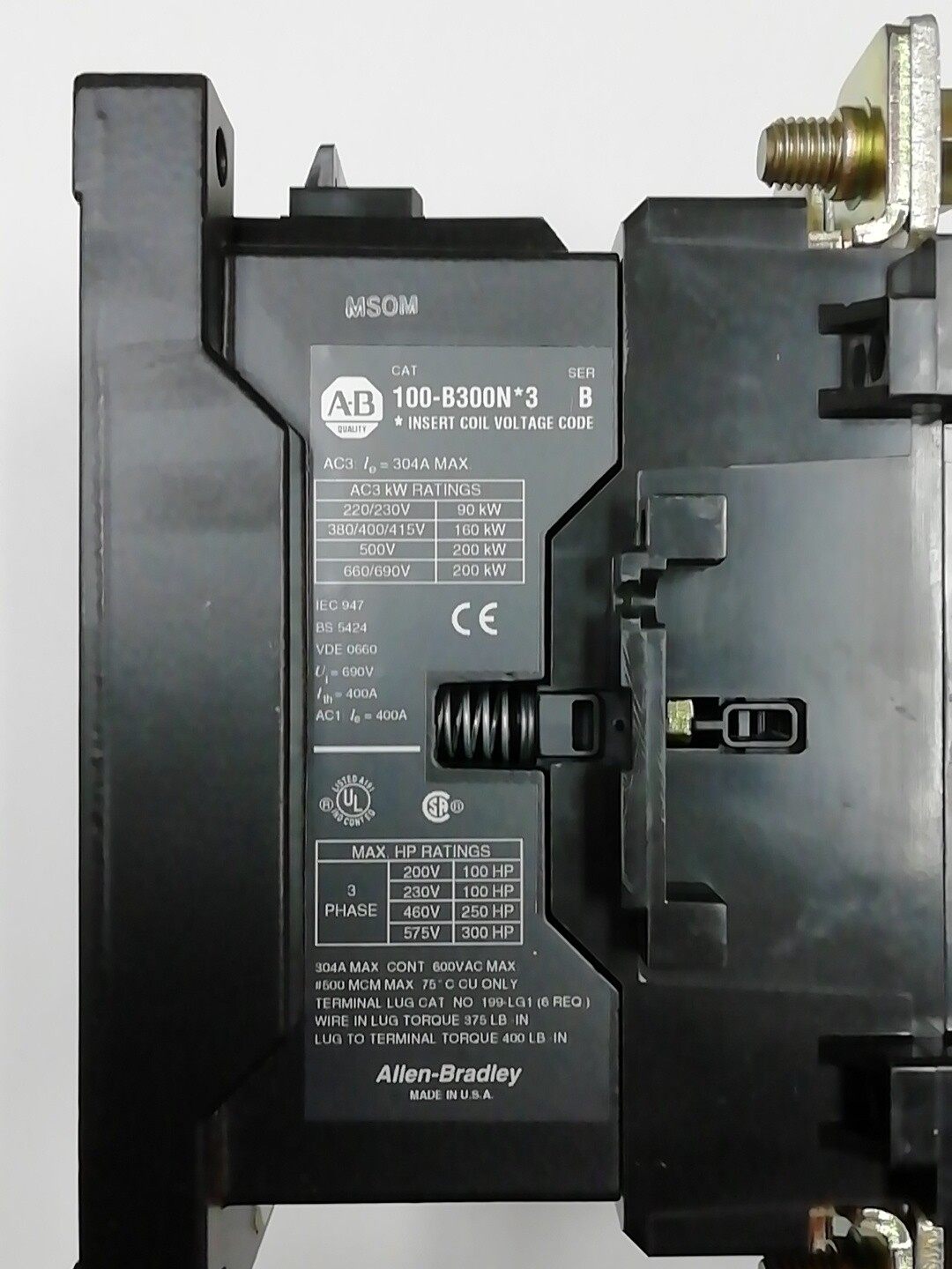 100-B300ND3线圈AC220V交流接触器美国AB全新,库存1只,无原包装。