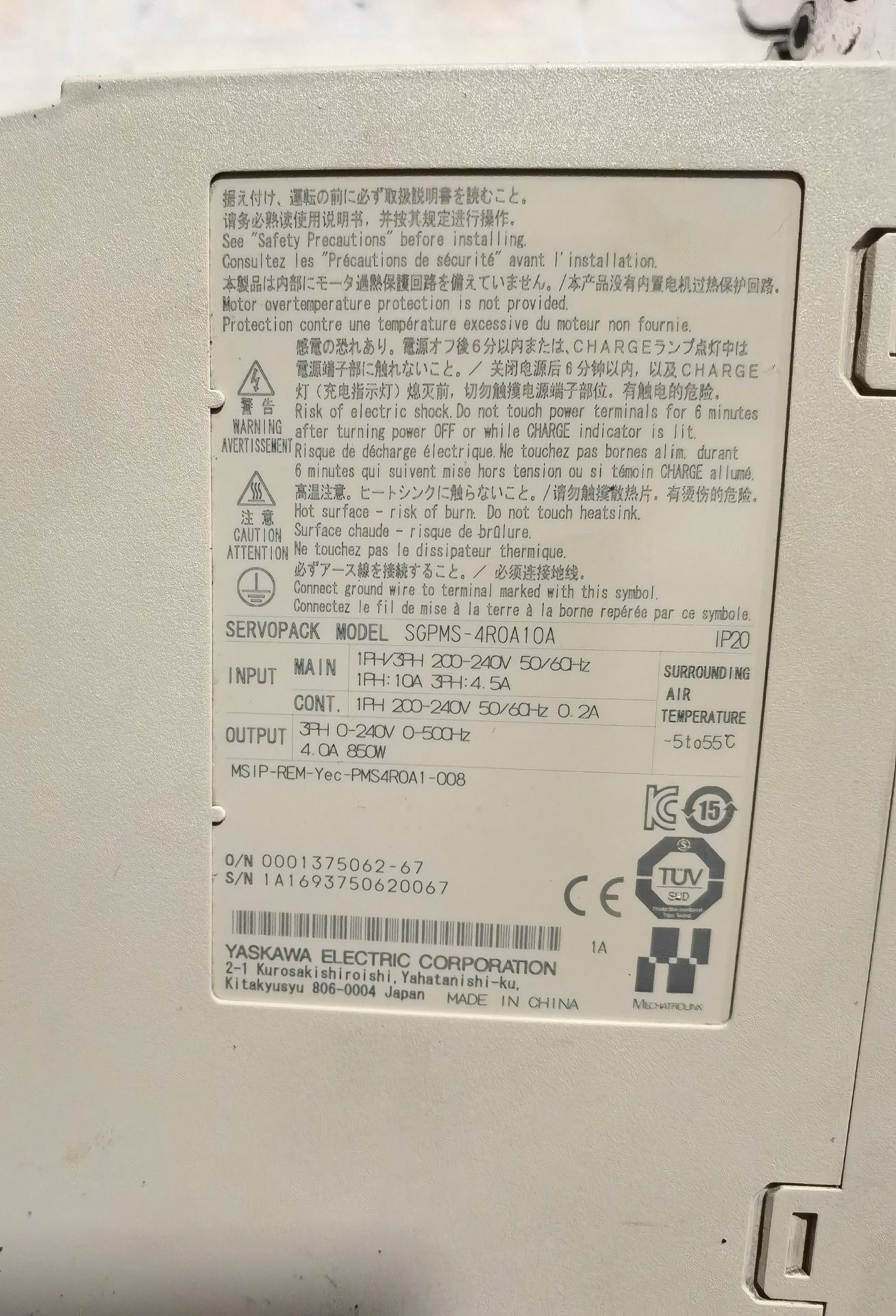 安川伺服电机,型号:SGMMG -09ADC61,0.85千瓦安川M系伺服驱动器型号:SGPMS-4R0A10A,0.85千瓦,二手拆机成色如图实物拍,标价为打包一套价格,包好不包邮顺丰快递费到付。