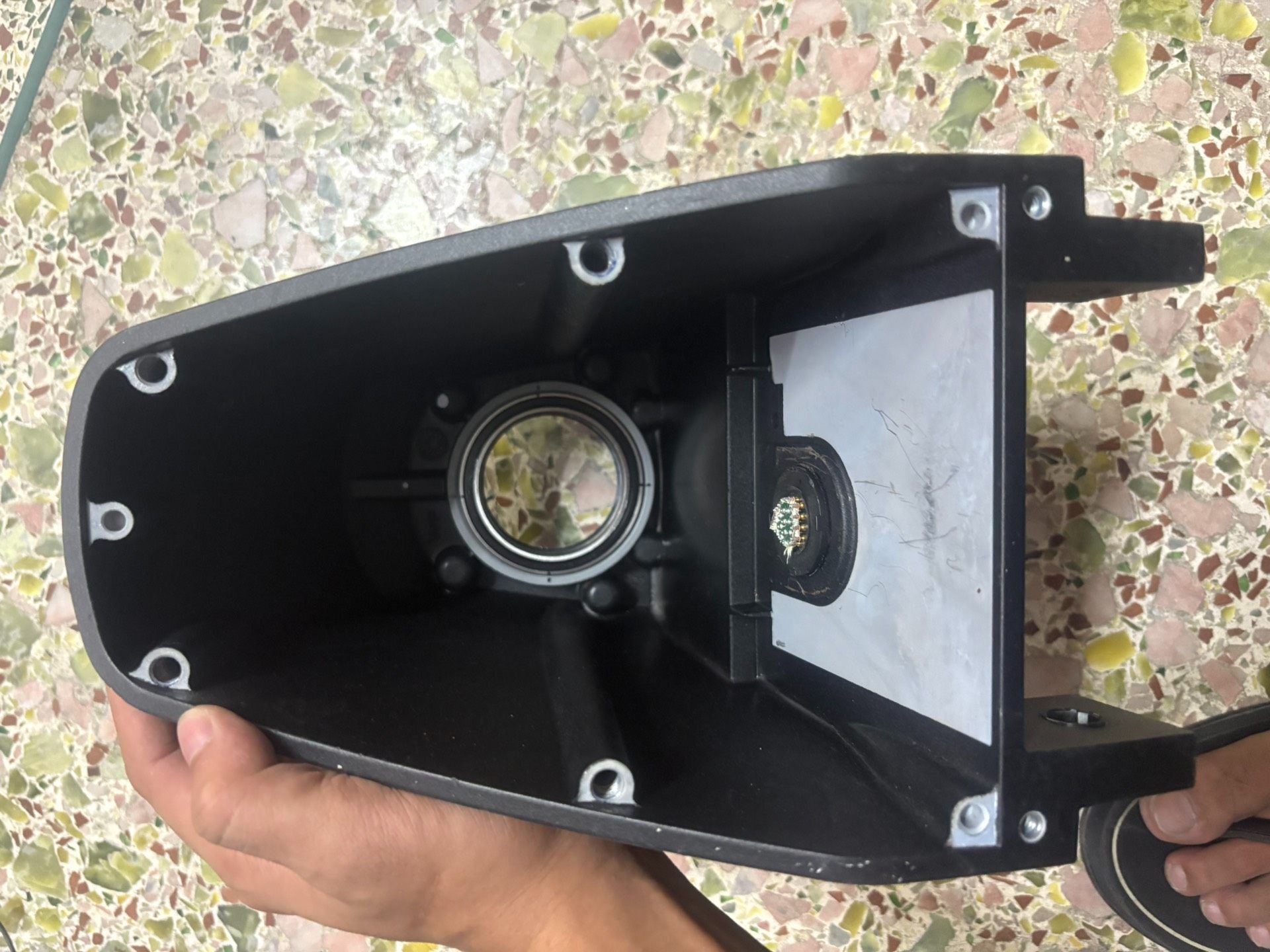 外壳采用高强度材料制成,表面经过特殊处理,具有良好的抗腐蚀性和耐磨性。背面设有多个安装孔,便于固定在各种工业设备上。中央的圆形连接器接口支持多种数据传输方式,确保了系统的兼容性和扩展性。