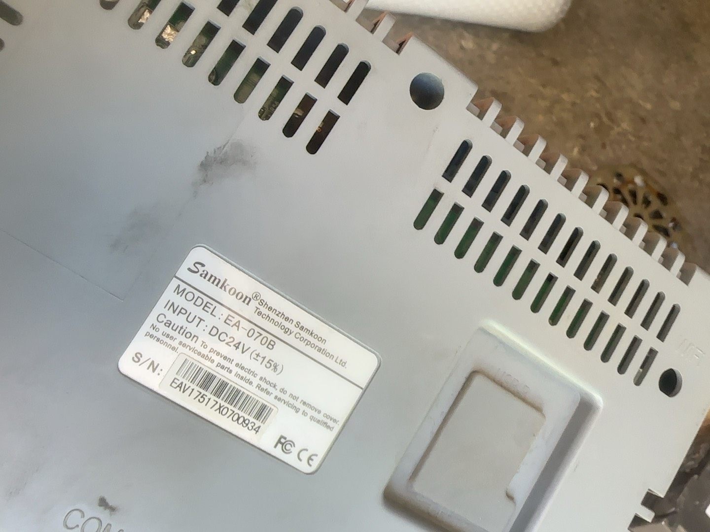 本款产品为Samkoon品牌EA-070B型号触摸屏,专为工业自动化控制系统设计,具备稳定可靠的性能表现。从图片可见,该触摸屏外观呈灰色金属外壳,屏幕尺寸适中,边框清晰,左侧印有“Samkoon”品牌标识,底部设有COM、RUN、PWR三个状态指示灯,用于实时监控设备运行状态。
