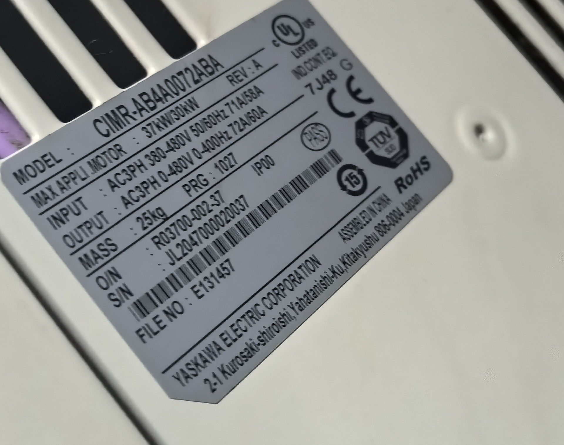 - 具体型号:CIMR-AB4A0072ABA