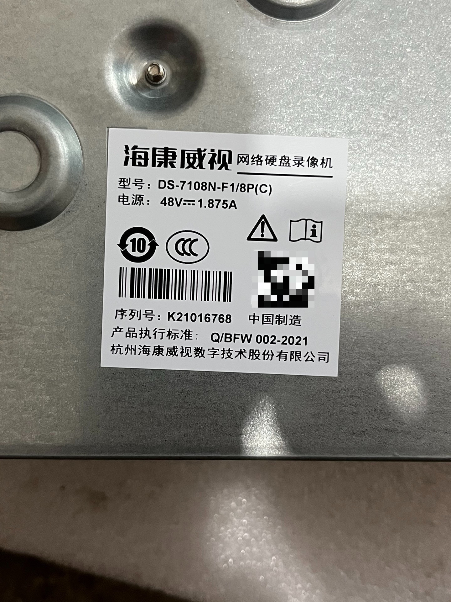 - 型号:DS-7108N-F1/8P(C)