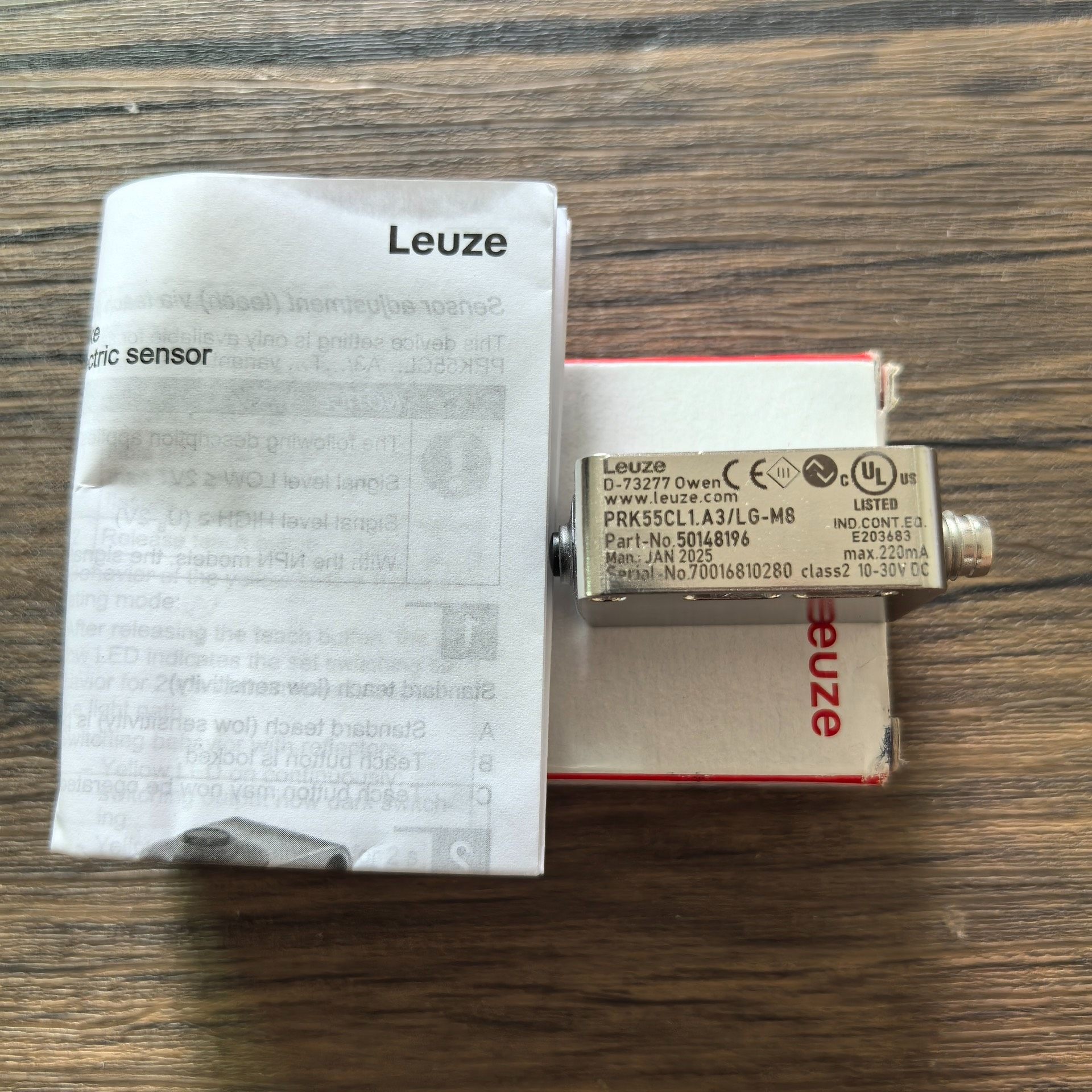 这是一款来自德国的高品质工业级光电传感器,由知名制造商 Leuze 生产,型号为 PRK55CL1.A3/LG-M8,属于极化反射式光电传感器系列,广泛应用于自动化生产线、包装机械、机器人引导系统等领域。
