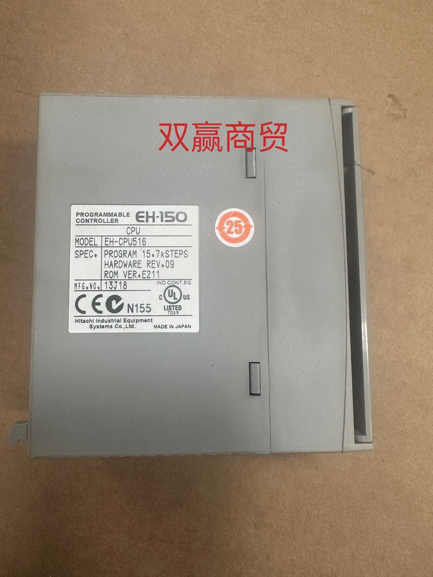 本产品为全新原装进口的日立PLC模块EH-CPU516,型号清晰标注于包装盒上,编号为1696-0016,批次号11B02,确保正品来源可靠。