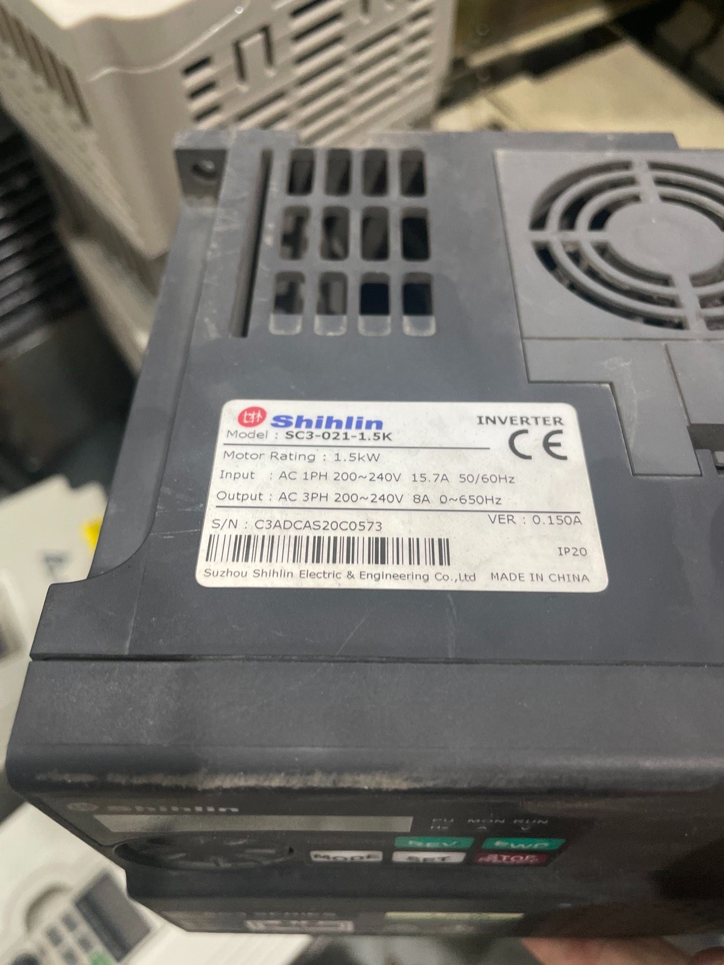 本款产品为士林(Shihlin)品牌的SC3系列变频器,型号为SC3-021-1.5K,是一款专为工业自动化应用设计的高性能变频驱动设备。其额定功率为1.5KW,支持220V单相电源输入,广泛应用于风机、水泵、输送带等需要调速控制的电机系统中。
