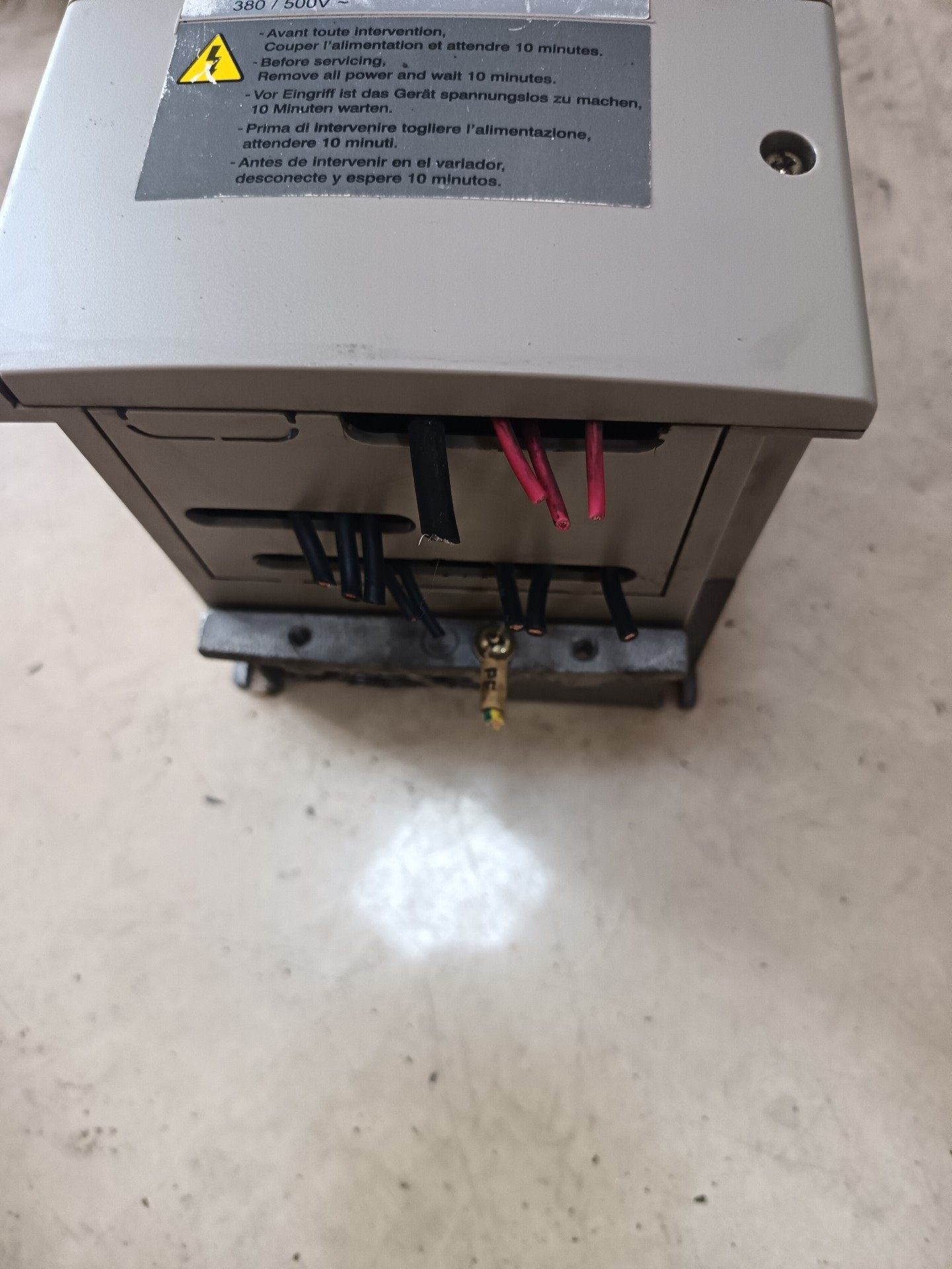在进行任何维护或检修前,请务必断开电源并等待至少10分钟,以确保电容器完全放电,避免触电风险。设备表面贴有明显的高压警示标志,提醒使用者注意安全操作。