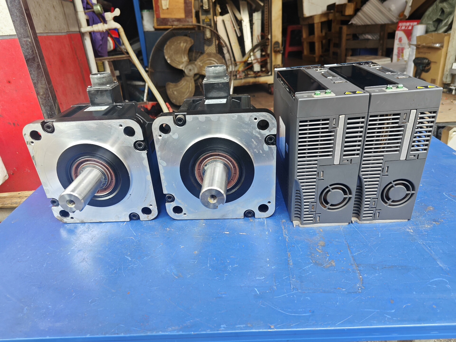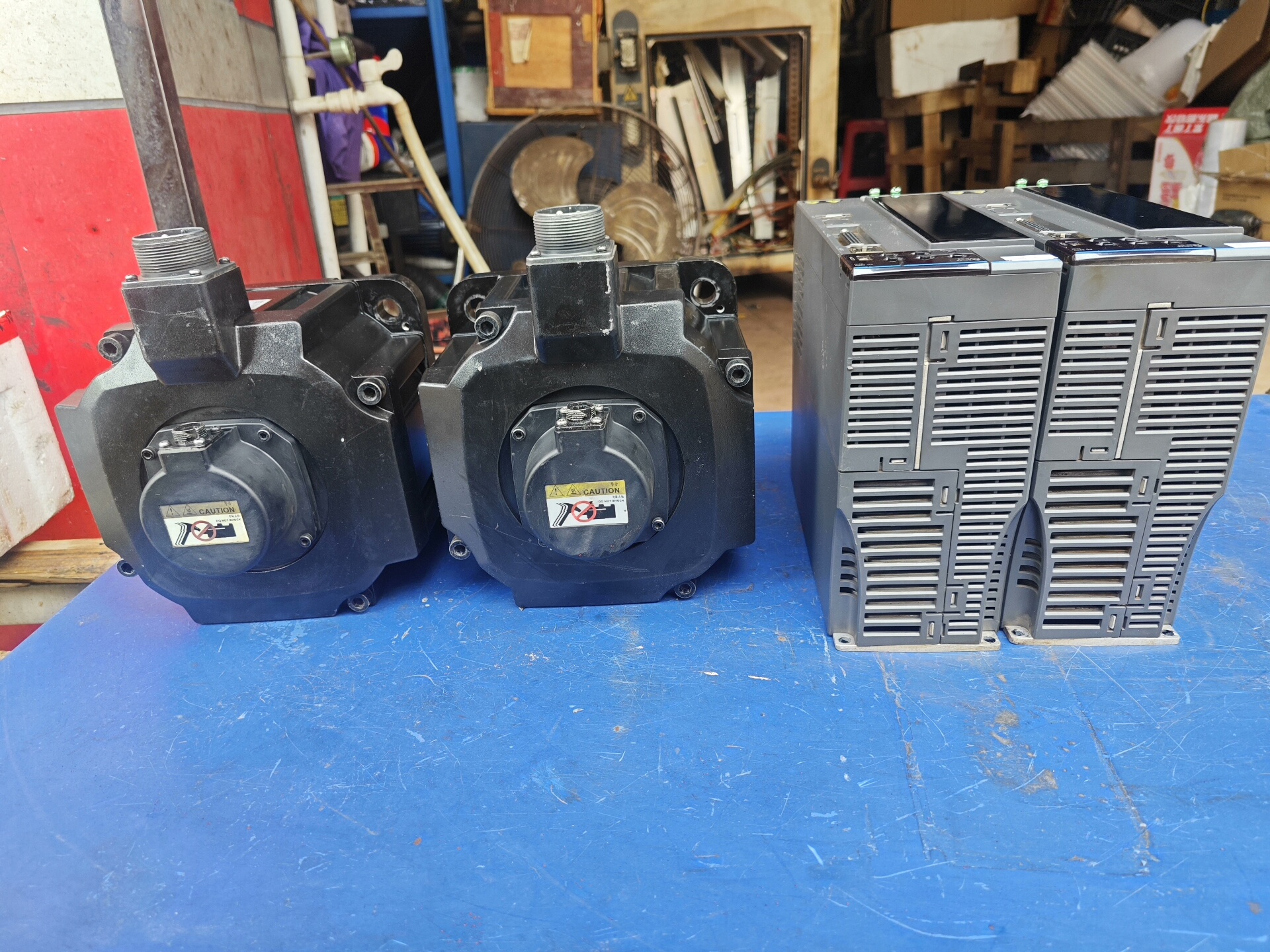 该套装为二手拆机件,外观成色如图所示,经检测功能完好,可直接装机使用。每套包含两个电机和两个驱动器,售价2200元,运费需自理。