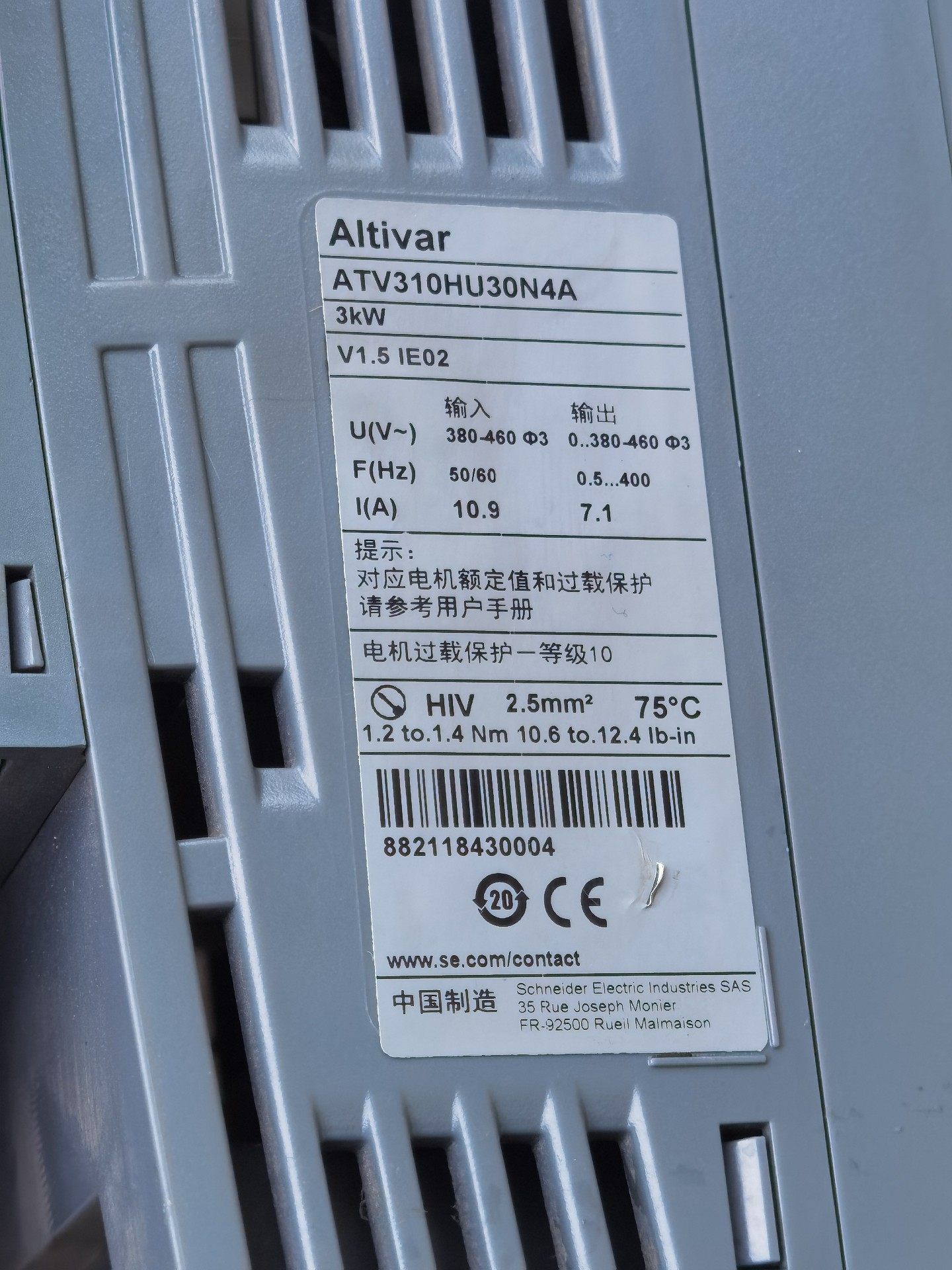 - 型号:ATV310HU30N4A