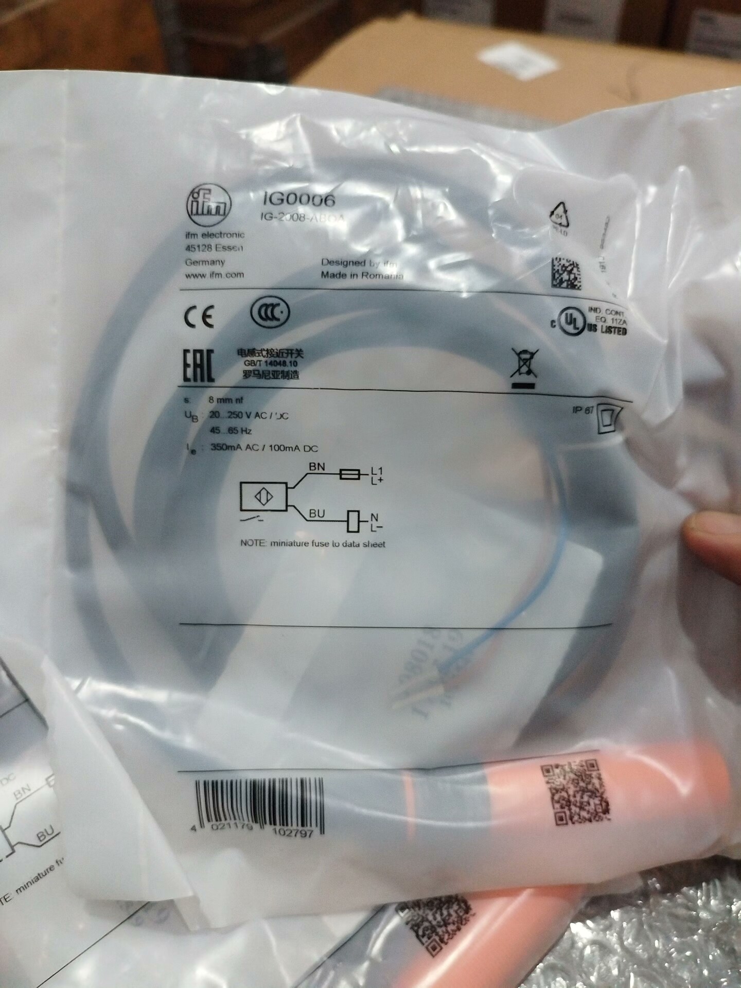 易福门IG0006传感器,全新原装正品,数量不多,项目剩余库存,单价350顺丰包邮
