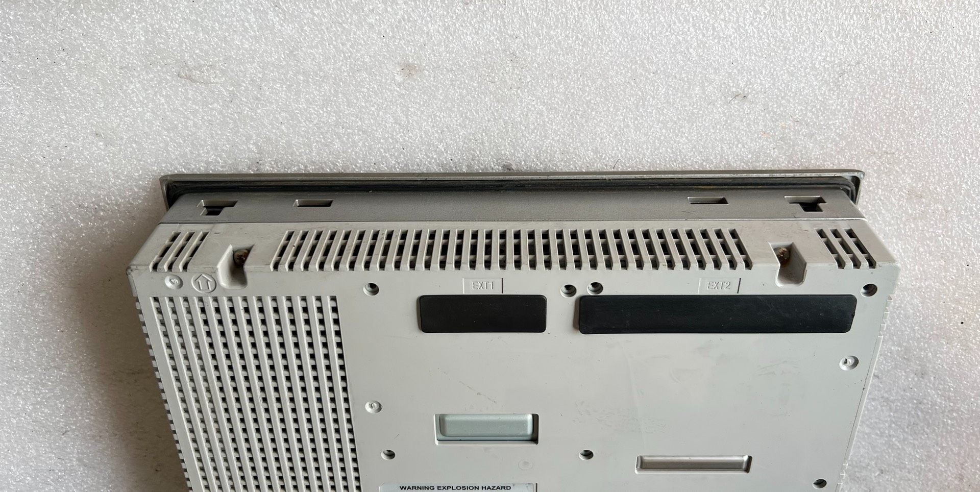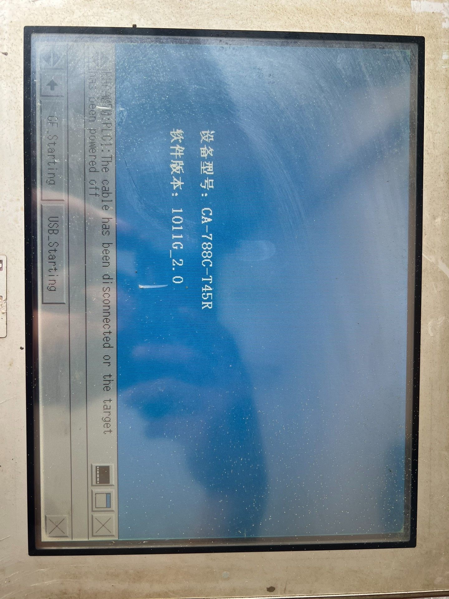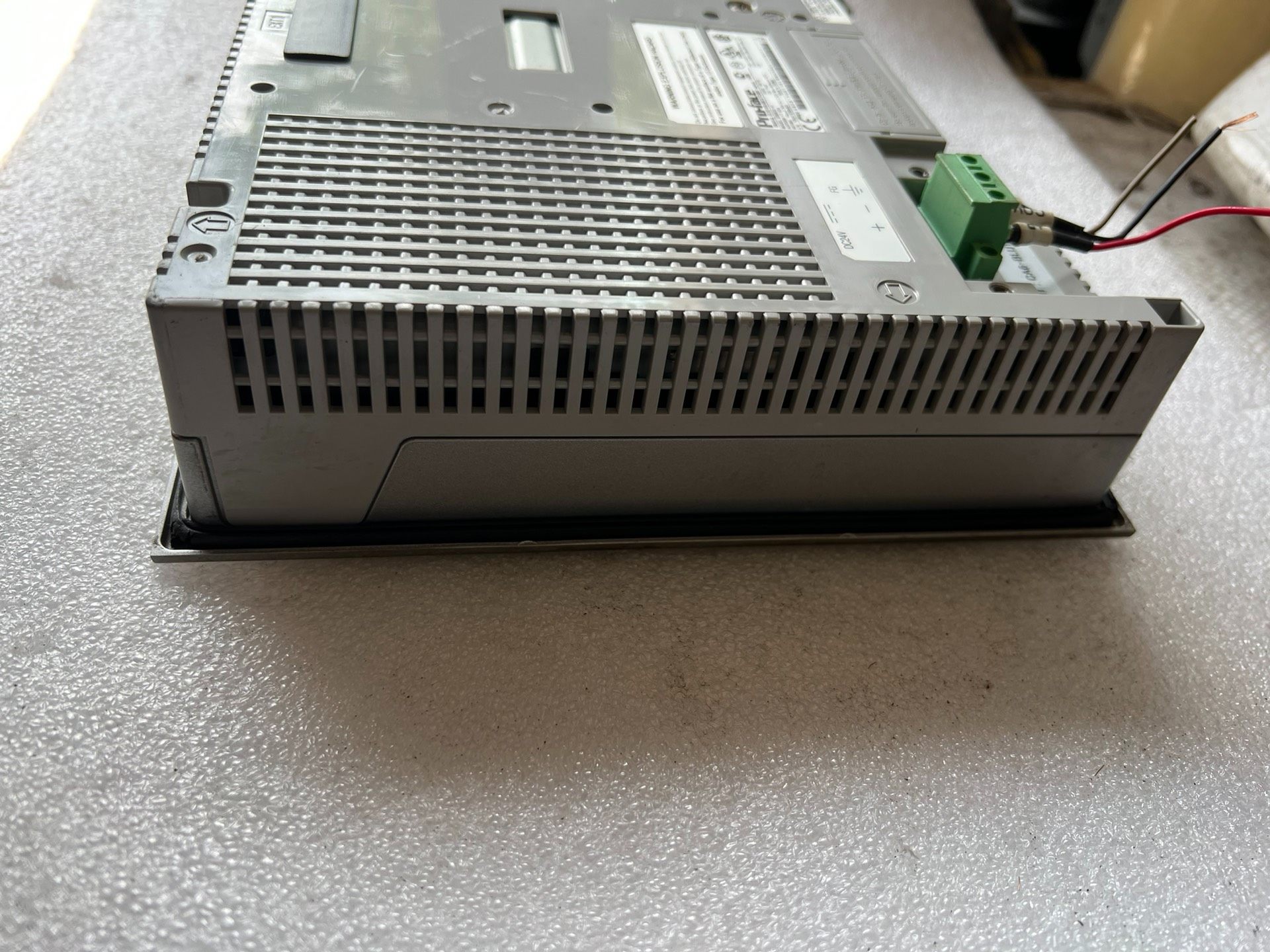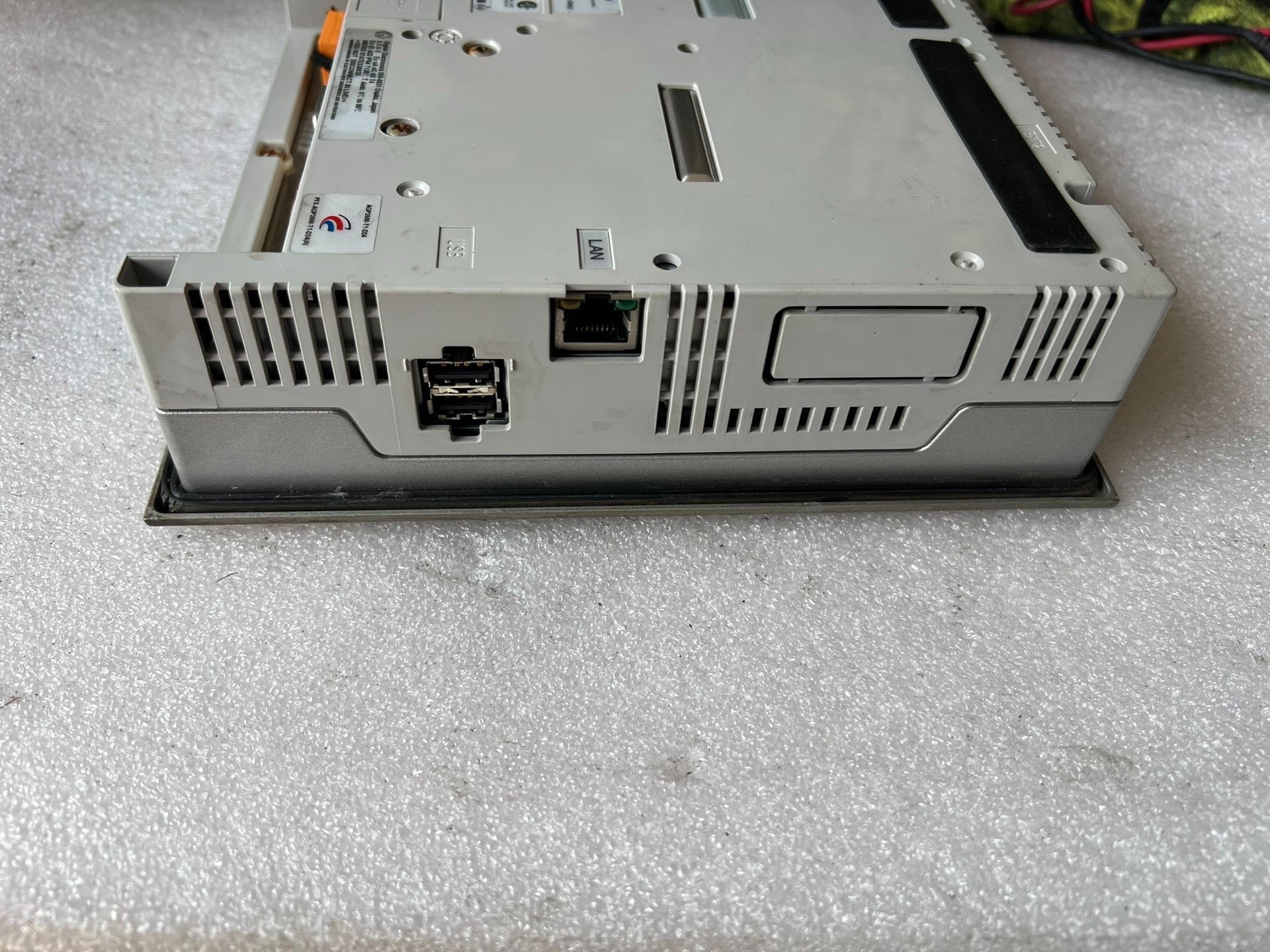 - 外观特征:银色金属边框,方形设计,屏幕尺寸适中,适合安装在控制柜或操作台内。屏幕表面有轻微使用痕迹,但不影响正常显示和触控功能。