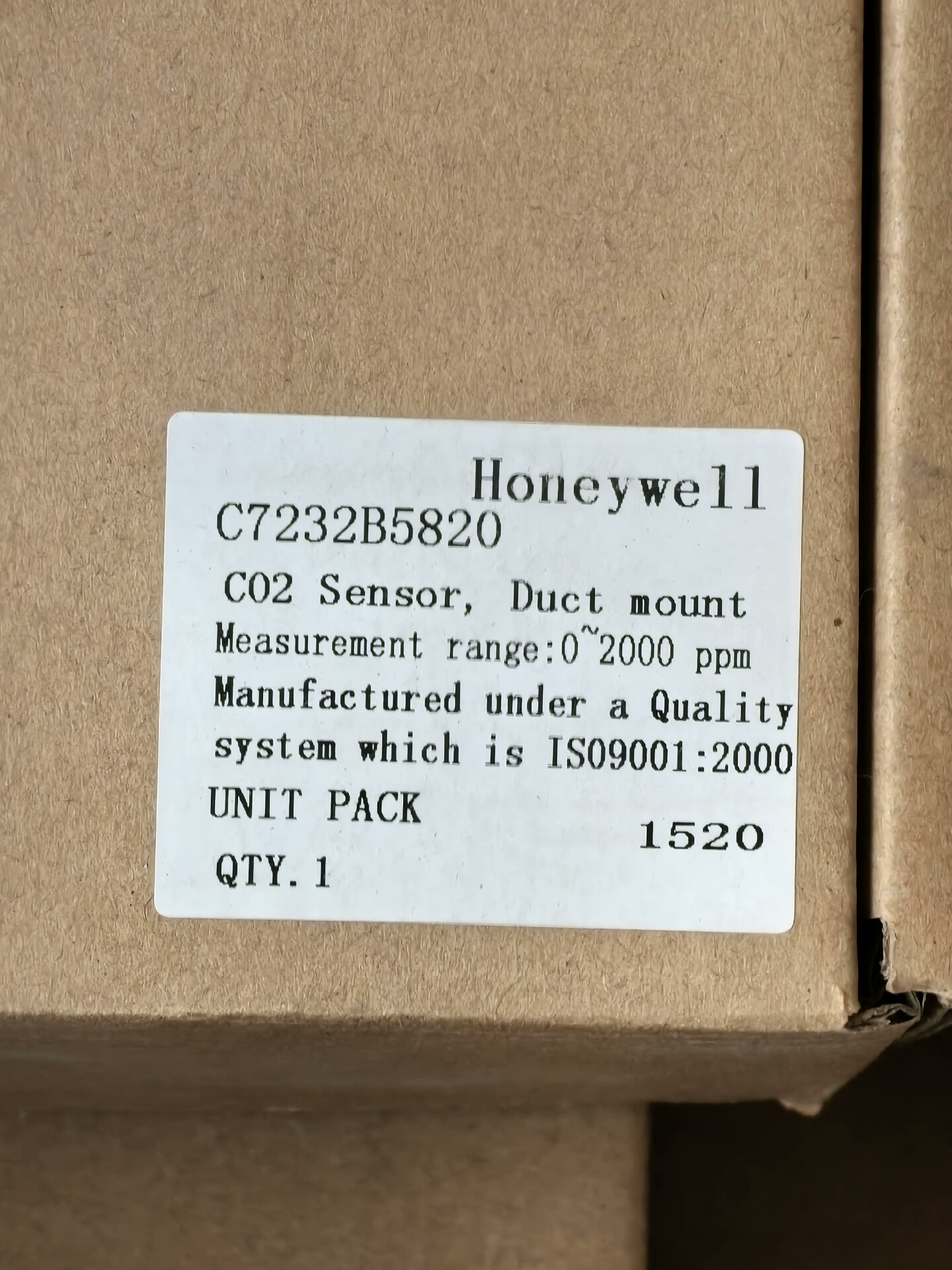 Honeywell C8000D001 风管二氧化碳传感器产品说明