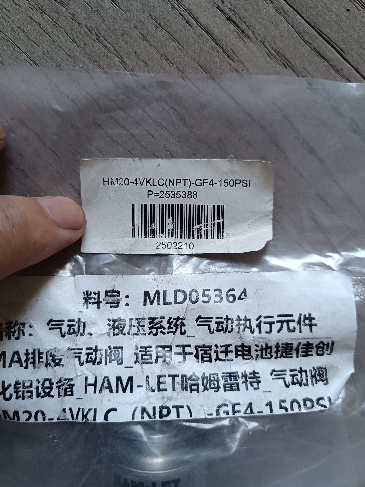 本产品为全新原装的 HAM-LET(哈姆雷特)品牌气动阀,型号为 HM20-4VKLC(NPT)-GF4-150PSI,专为高精度工业自动化控制系统设计,广泛应用于 TMA 排放系统及氧化铝生产设备中。