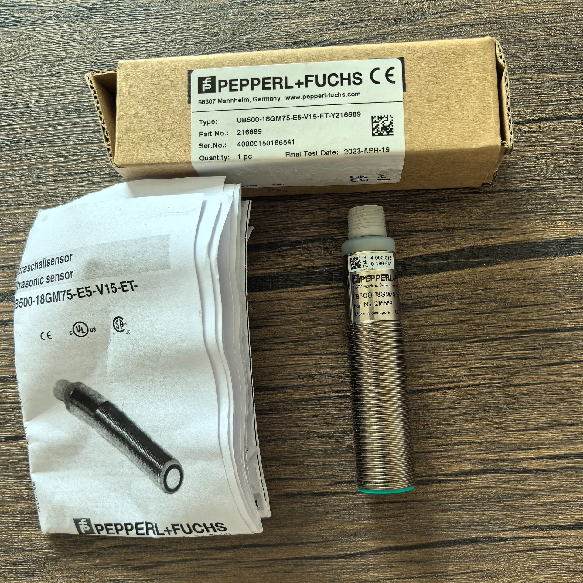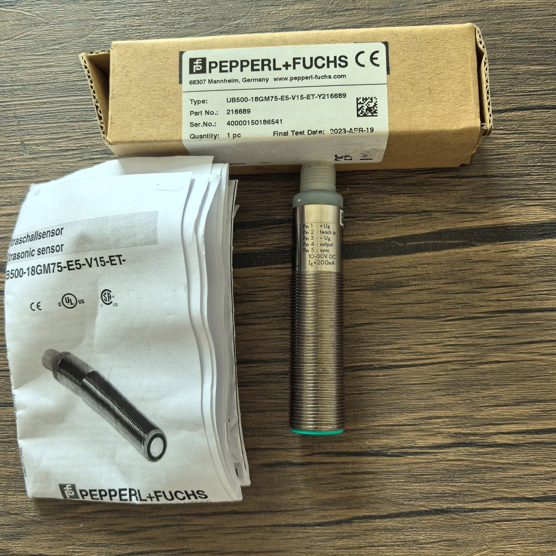 本款产品为德国制造的PEPPERL+FUCHS品牌传感器,型号为UB500-18GM75-E5-V15-ET-Y216689,是一款高性能的工业级传感器,广泛应用于自动化生产线、智能制造设备以及各种需要精确检测的工业场景中。
