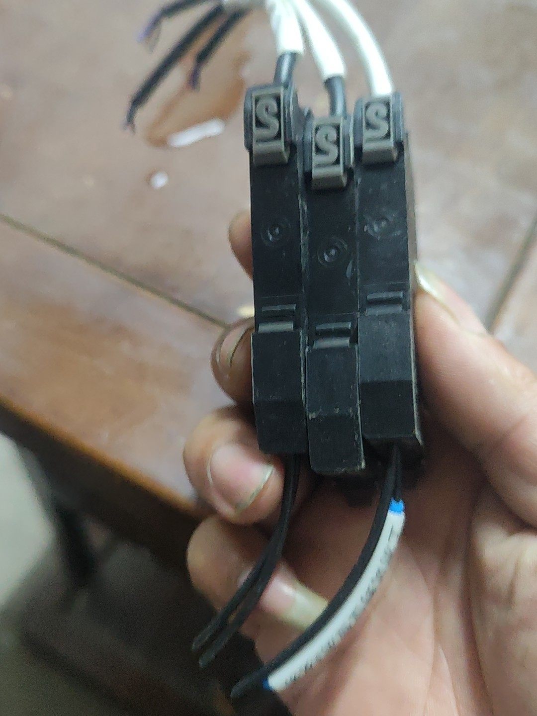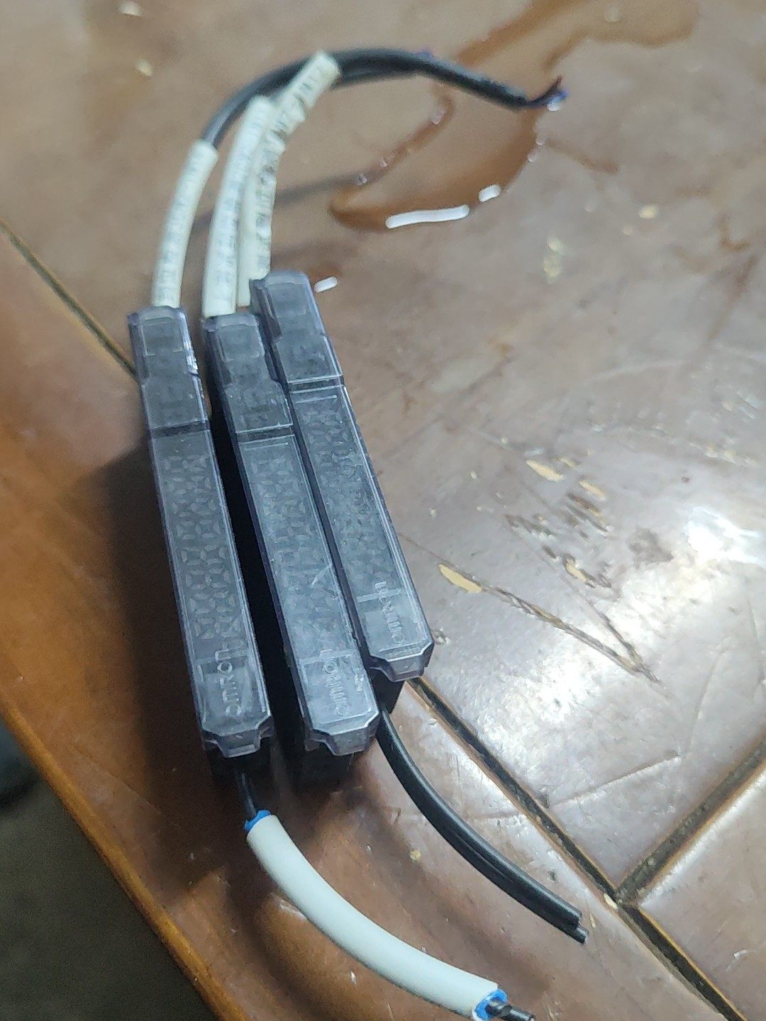 本产品为日本知名品牌欧姆龙(OMRON)生产的E3X-ZV11型号光纤放大器,属于工业自动化领域中常用的光电传感器外围设备。图片展示的是三台实物拍摄的拆机件,整体成色良好,表面无明显破损,具备完整的接线端口和外壳结构。