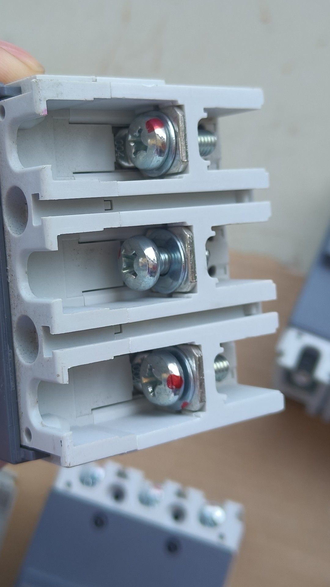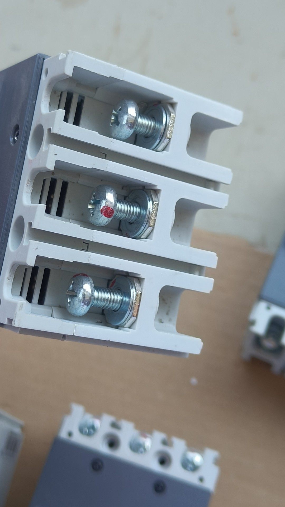 本批次共7台,其中有3支螺丝缺失,但不影响整体使用功能。建议在安装前检查接线端子是否牢固,并根据实际负载情况选择合适的脱扣特性。