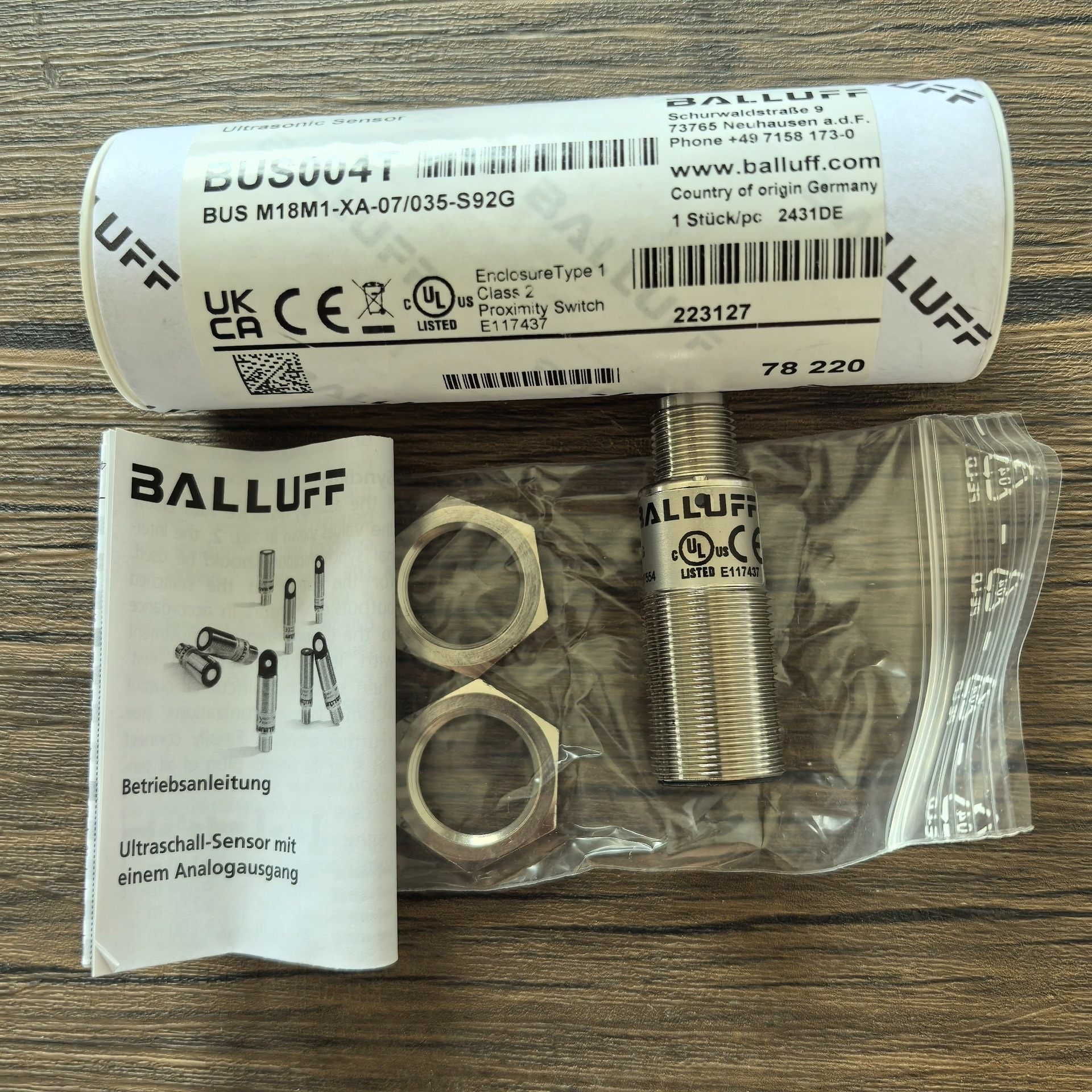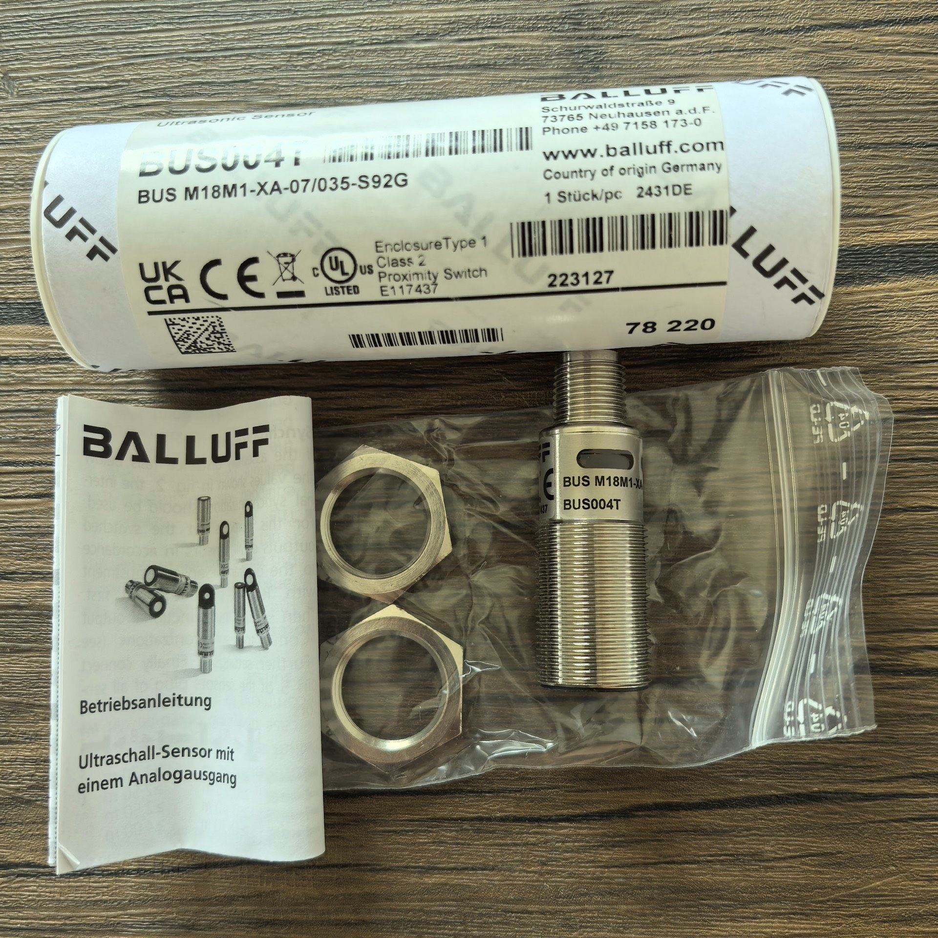本款产品为BALLUFF(巴鲁夫)品牌的BUS004T超声波传感器,是一款高性能的工业级检测设备,广泛应用于自动化生产线中的非接触式检测任务。