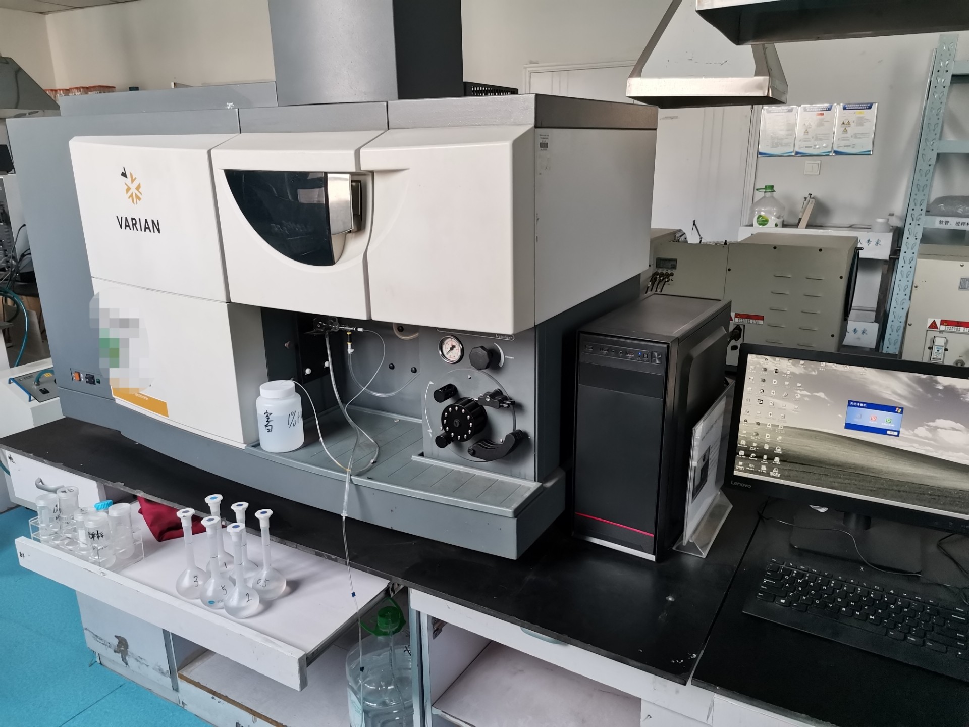该设备在实验室中通常配合通风系统使用,如图所示,设备旁配有试管架、试剂瓶等辅助工具,便于样品前处理及分析操作。定期的维护与校准可确保其持续稳定的分析性能,如需维修服务,建议联系专业的光谱仪技术支持团队。