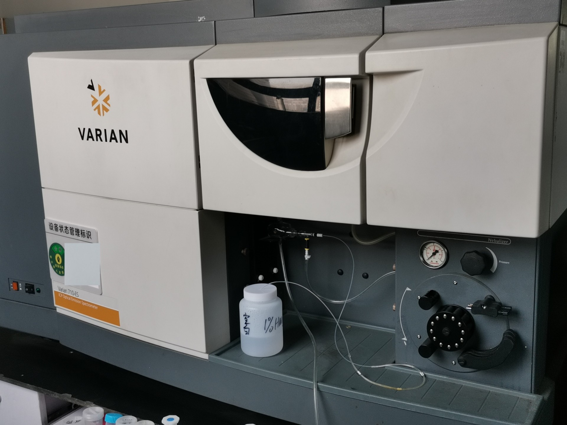 VARIAN 710-ES电感耦合等离子体光谱仪(Inductively Coupled Plasma Optical Emission Spectrometer, ICP-OES)是一款高精度的元素分析仪器,广泛应用于实验室中的痕量元素检测与定量分析。