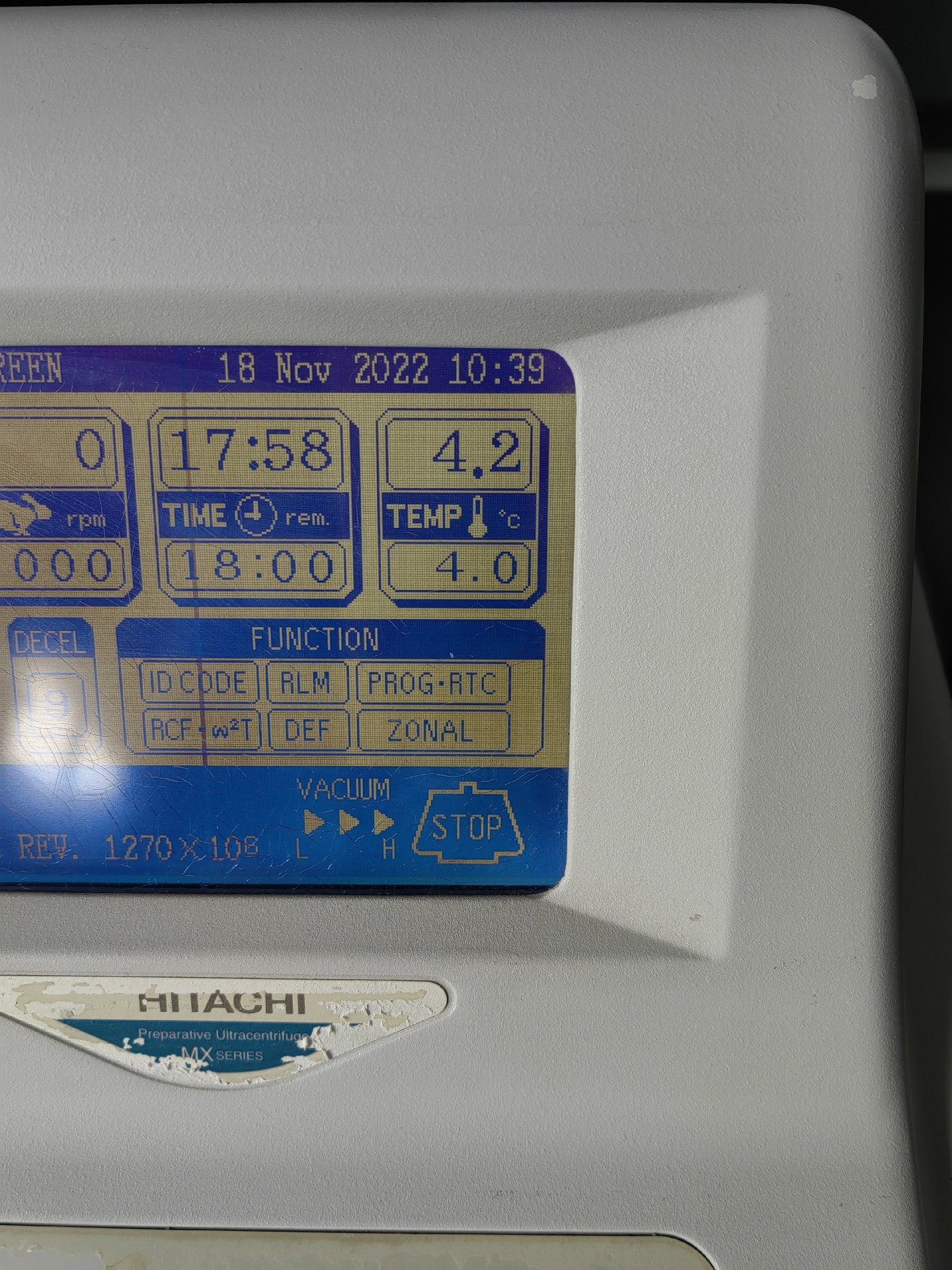 日立 himac CP70MX 超速离心机是一款高性能的实验室离心设备,专为生物化学、分子生物学等领域的精密分离需求设计。设备采用稳定的机械结构和先进的控制技术,确保样本分离过程的高效与可靠。