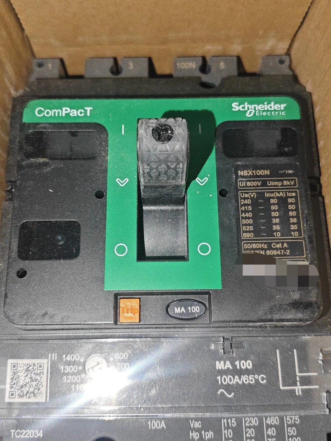 C10N3MA100 施耐德塑壳式断路器NSX100N/3P/100A,全新原装。