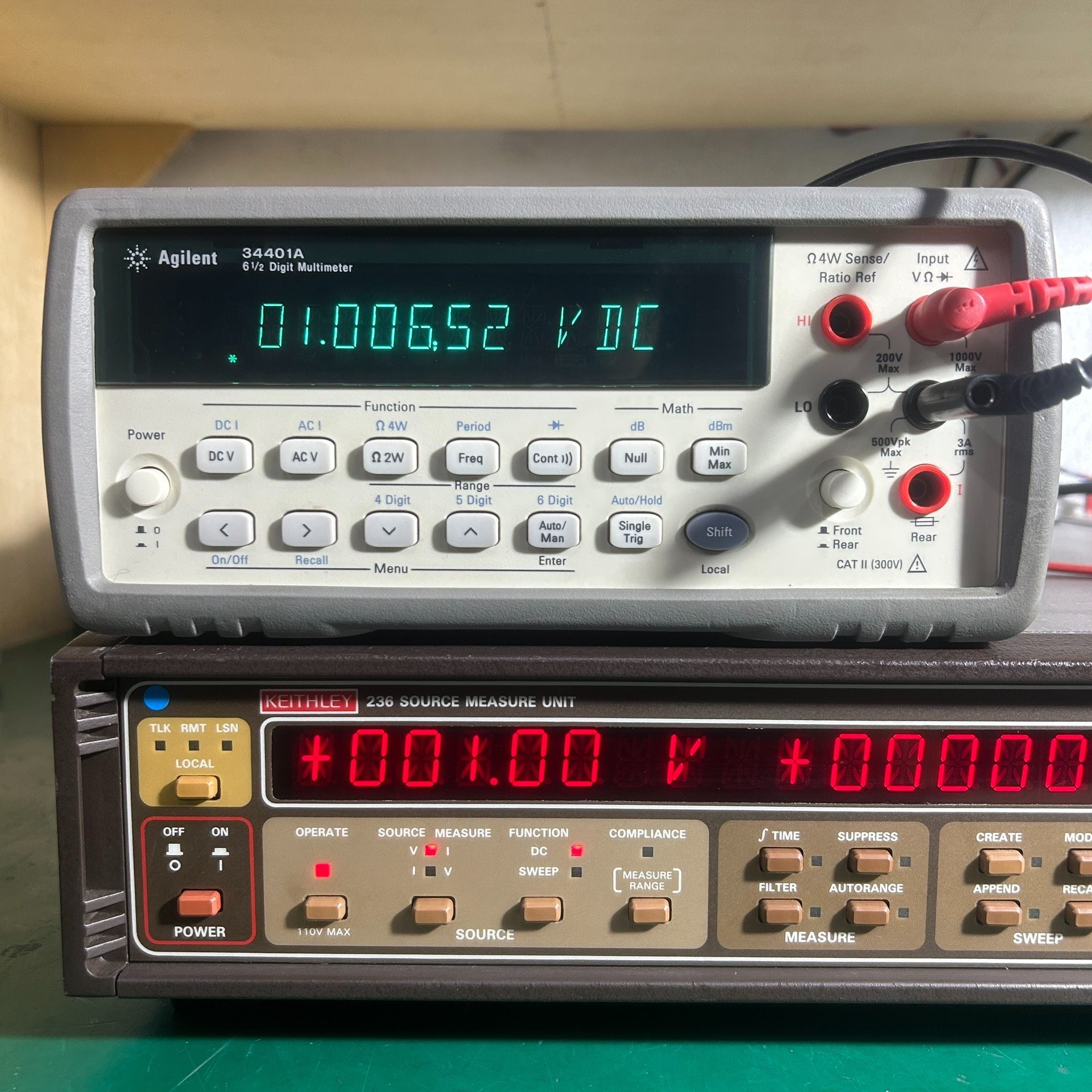 Keithley 236源测量单元是一款高精度的电子测试仪器,原装无修,功能全部正常,精度非常准。设备采用棕色机架式设计,正面配备醒目的红色LED显示屏,可清晰显示电压、电流等参数及工作状态(如STBY.)。机身集成SOURCE、MEASURE、SWEEP、TRIGGER等多个功能模块按键和数据输入键盘,操作便捷,支持手动控制与编程操作。