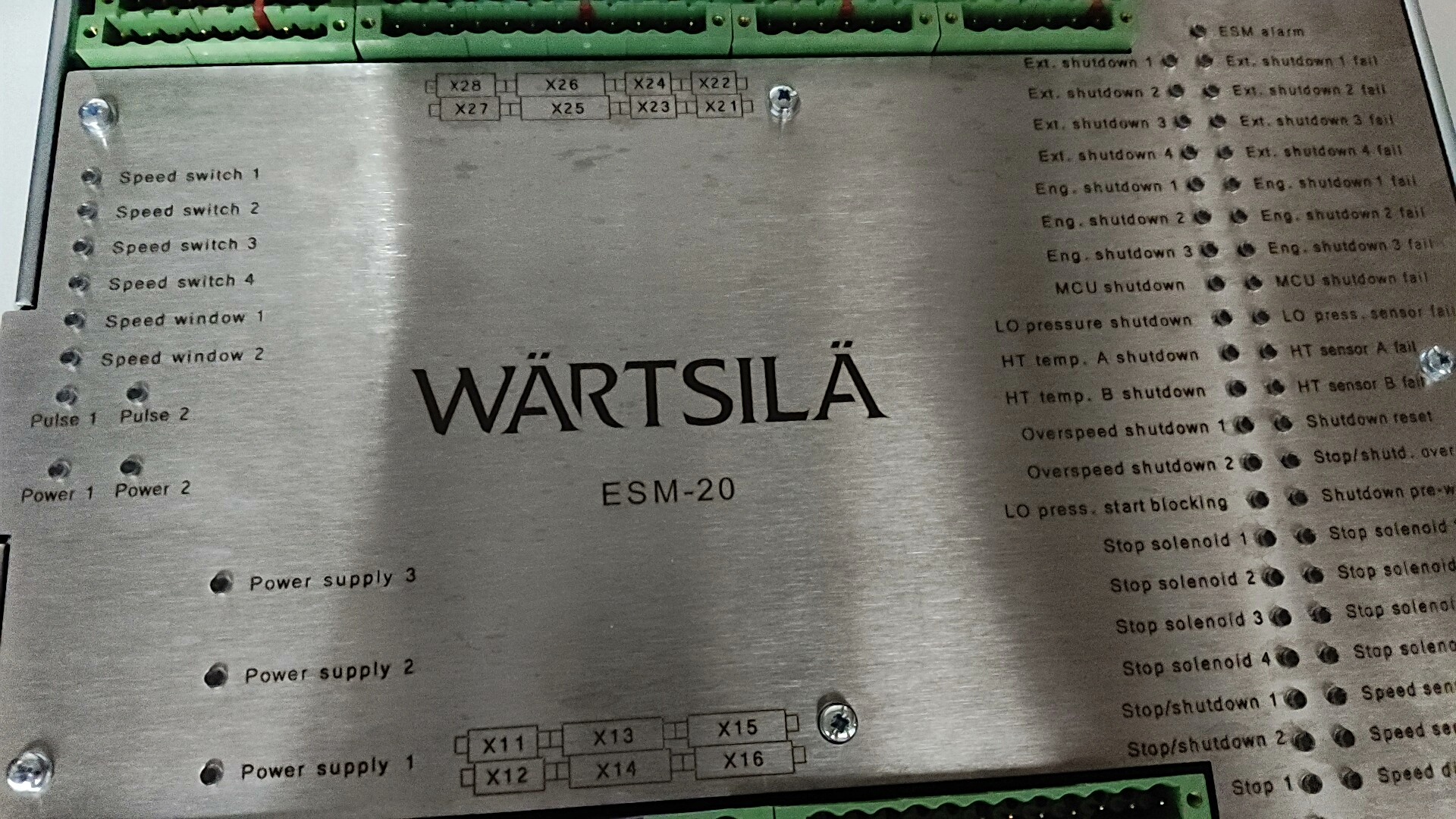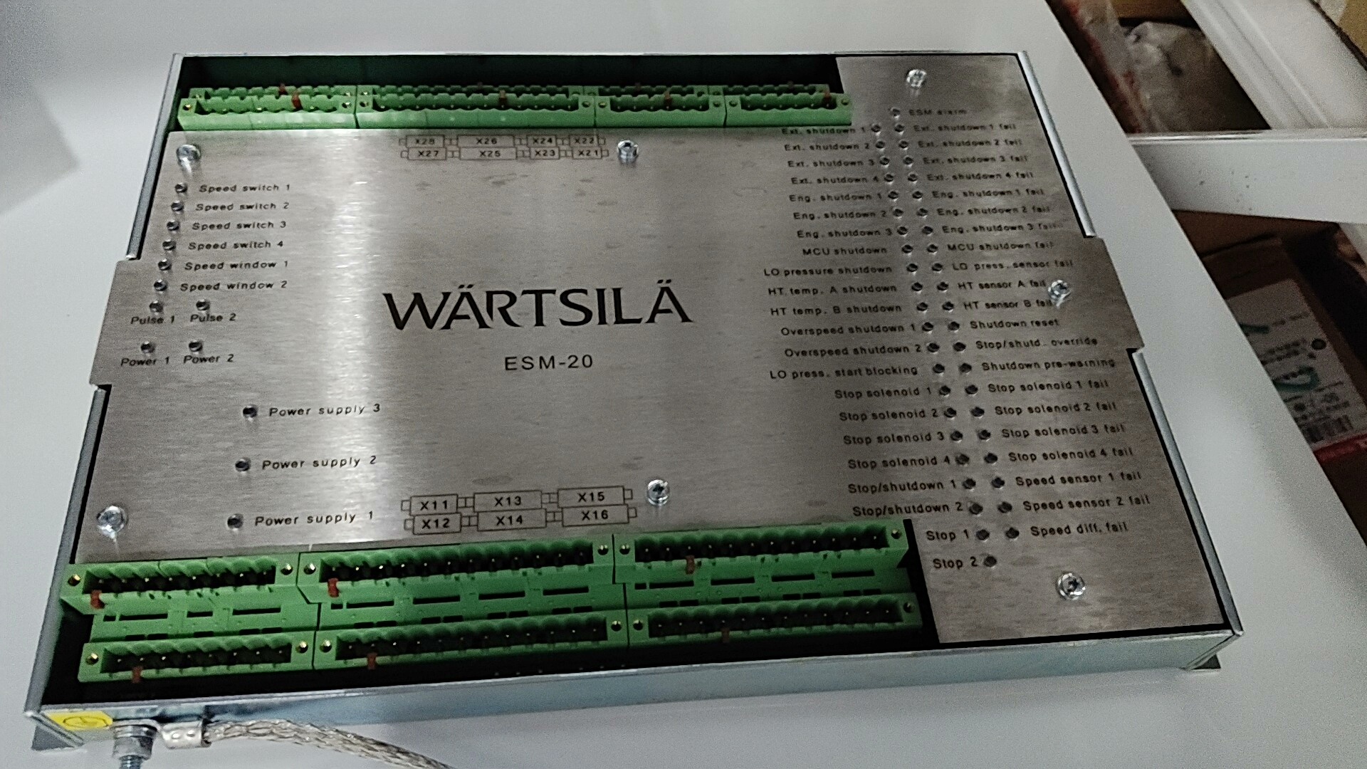 WARTSILA ESM-20 是一款专为工业设备安全监控与保护设计的控制模块,广泛应用于发动机、发电机组等关键工业设备的运行状态管理。其金属材质面板确保了在工业环境中的耐用性,绿色接线端子排便于快速接线与维护。