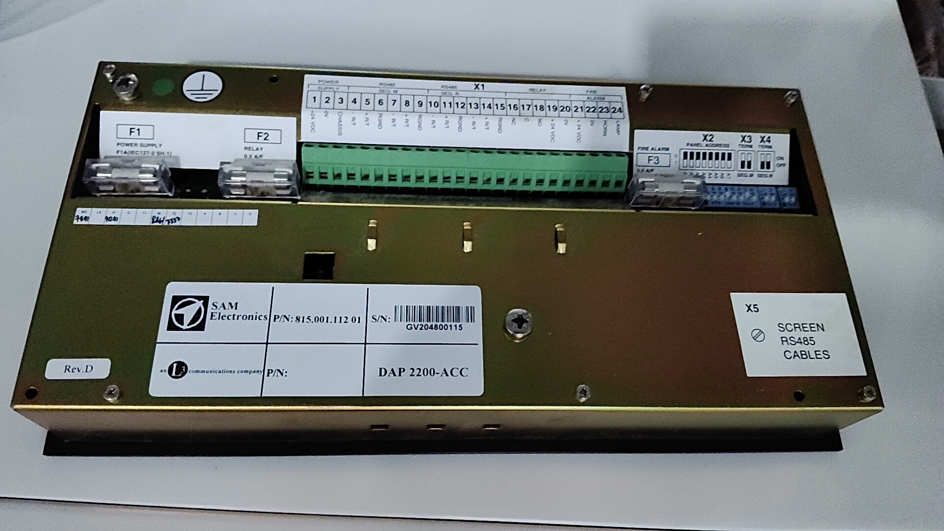 - 规范标识:表面清晰标注品牌(SAM Electronics)、型号(DAP 2200-ACC)、产品编号(P/N:815.001.112 01)及序列号(S/N:GV204800115),便于产品追溯和管理。