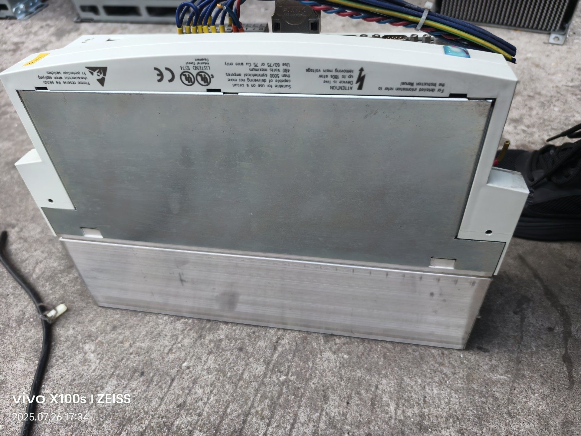 本产品为Lenze(伦茨)品牌的9324SE型号变频器,属于工业自动化领域常用的电机控制设备。设备整体成色达九成新,外壳为白色工业级材质,结构紧凑,背部集成了丰富的接线端子和接口,包括电源输入接口、电机输出端子、通讯接口(如DB9接口)等,适配多种工业控制场景的接线需求。