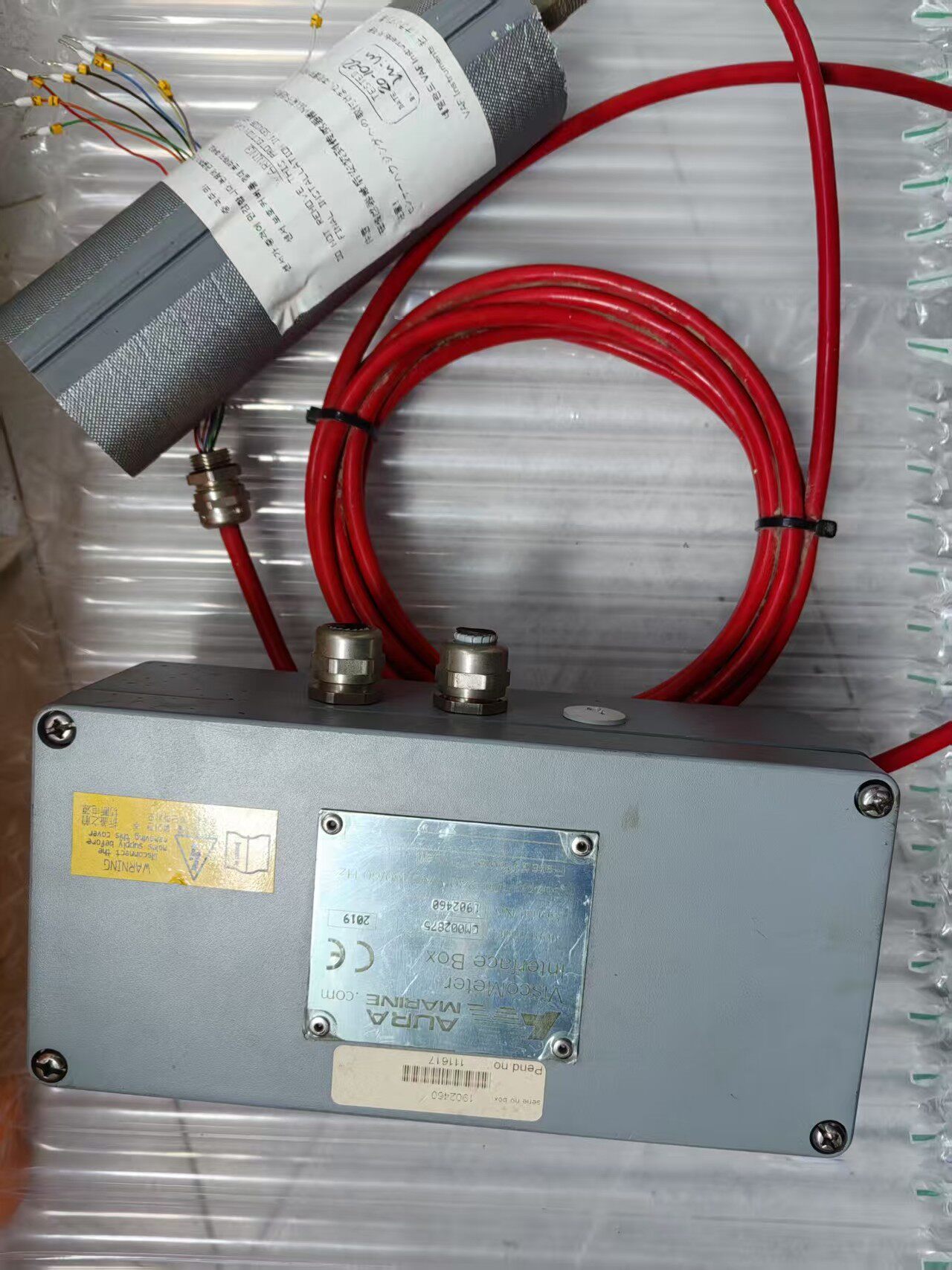 AURA MARINE VAF粘度传感器(型号:0279-0111)是一套专业的工业级粘度测量设备,包含传感器探头与控制器盒子,适用于需要精确监测和控制流体粘度的工业场景。产品采用实物拍摄,成色如图所示,具备稳定的性能和可靠的测量精度。