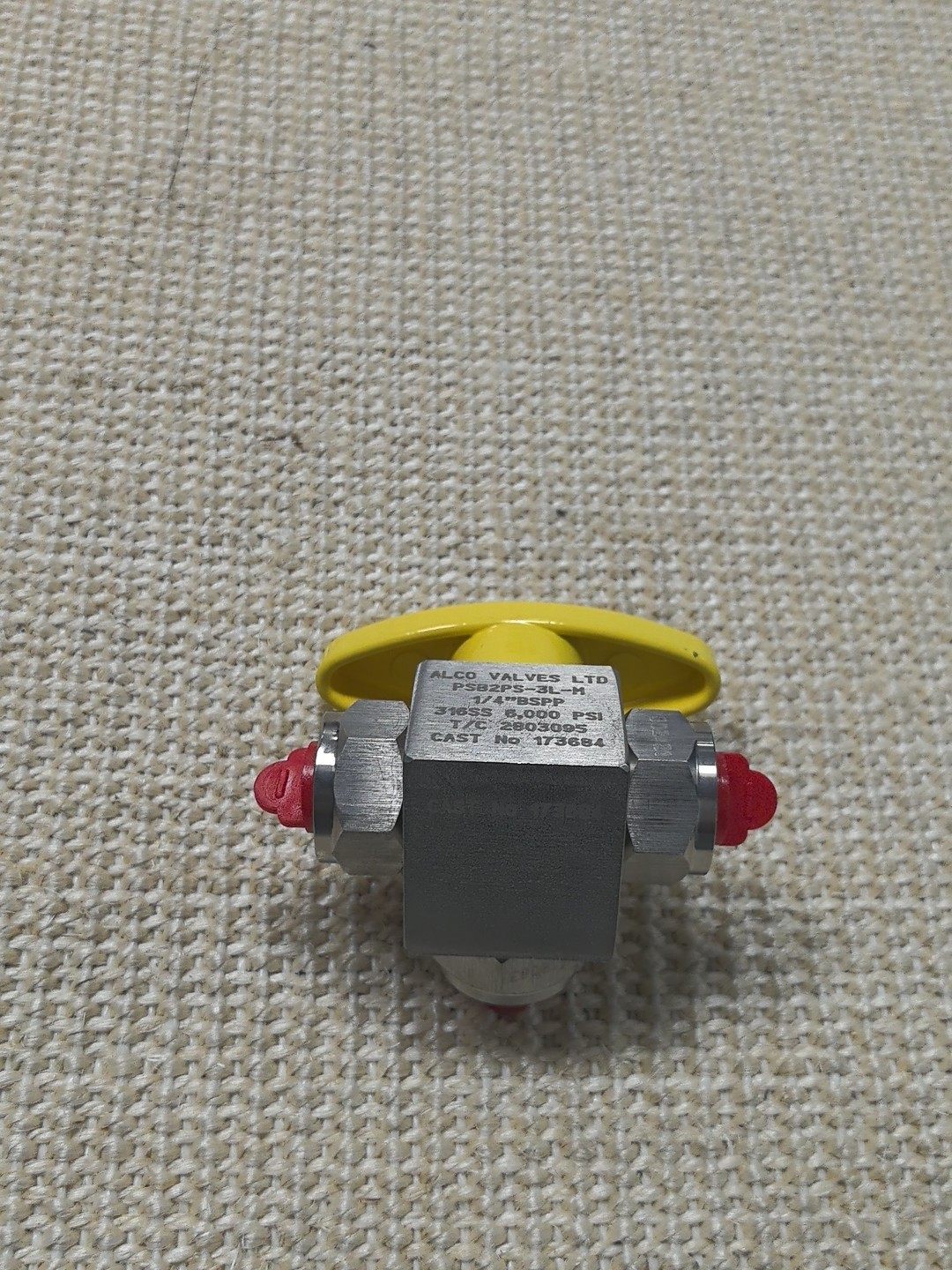 PSB2PS-3L-M 手动阀采用银色金属阀体结构,整体设计紧凑,具备良好的耐压性能和结构稳定性。顶部配备黄色蝶形手柄,手感舒适,便于手动旋转操作,实现快速启闭或流量调节。阀体上分布三个红色接口,疑似三通设计,可满足流体在不同通路间的切换需求。