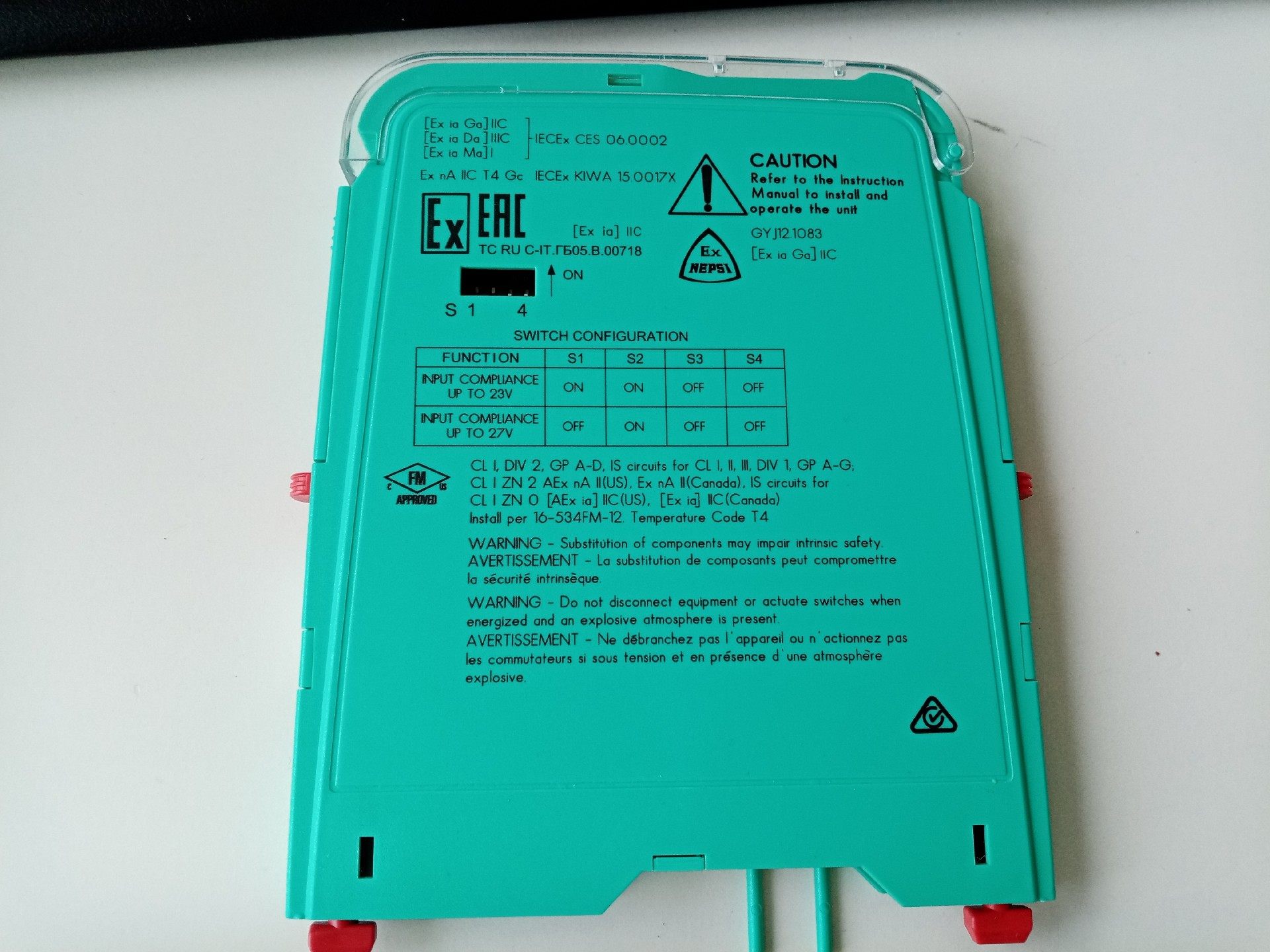 - 输出参数(危险区域):Uo=25.2V, Io=100mA, Po=630mW(Pins SL2)