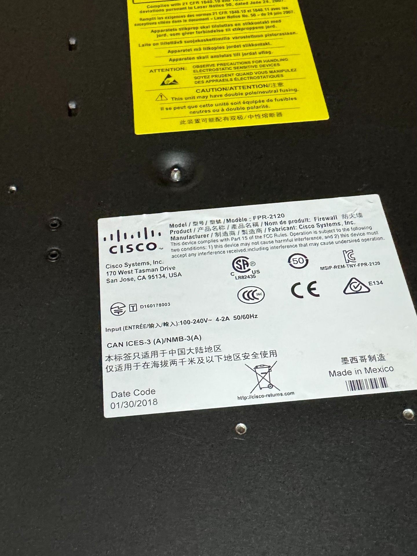 本产品为CISCO FPR-2100系列防火墙,属于企业级网络安全设备,成色较新,功能正常,适用于中小型企业网络边界防护、安全路由及访问控制场景。