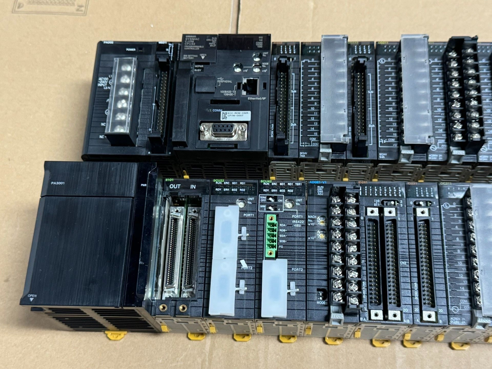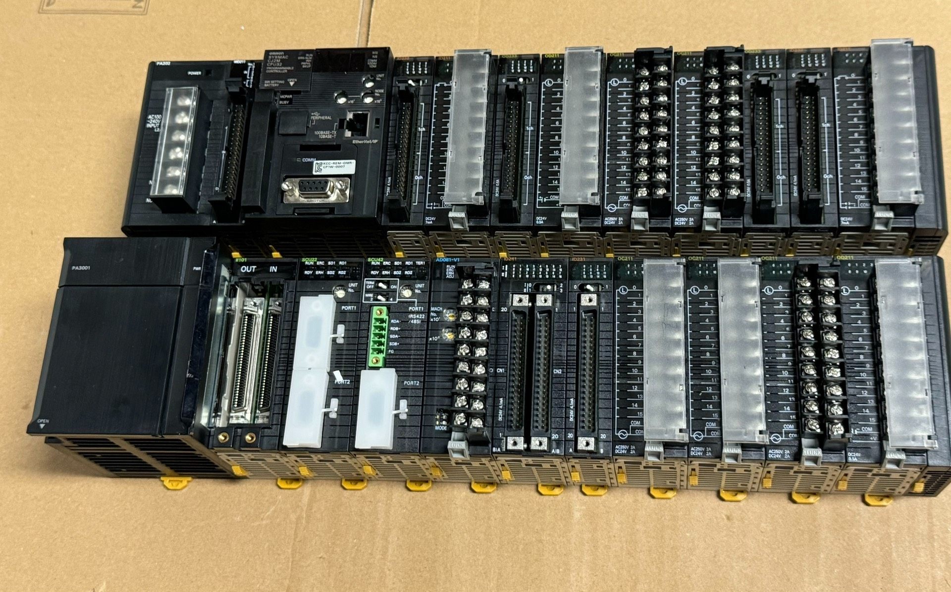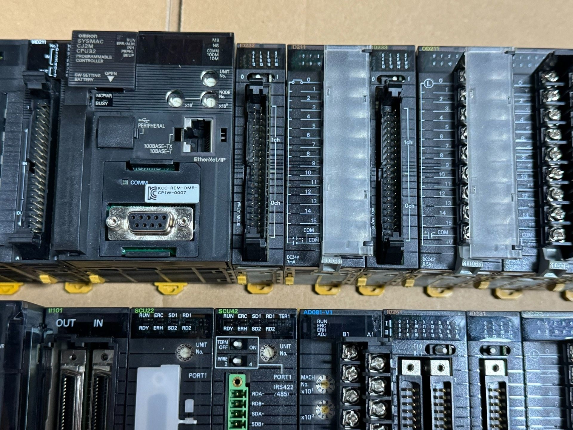 本产品为欧姆龙品牌PLC(可编程逻辑控制器)模块组合,包含CPU32中央处理单元、SCU22/SCU42通信模块、ID261/ID231数字量输入模块及OD211数字量输出模块,采用模块化设计,可灵活配置,适用于各类工业自动化控制场景。