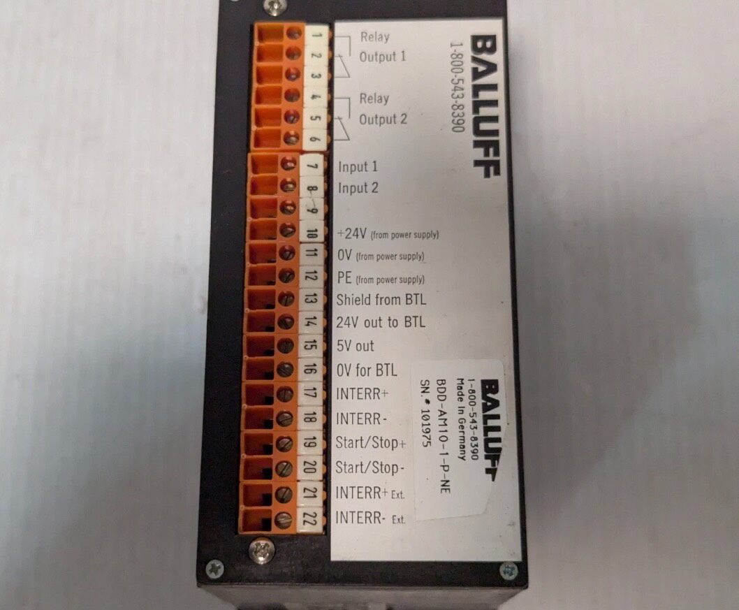 该设备为二手产品,使用前建议检查接线端子是否完好,确认电源电压与设备要求匹配(+24V),并根据巴鲁夫官方技术文档进行正确接线与调试,以确保设备稳定运行。