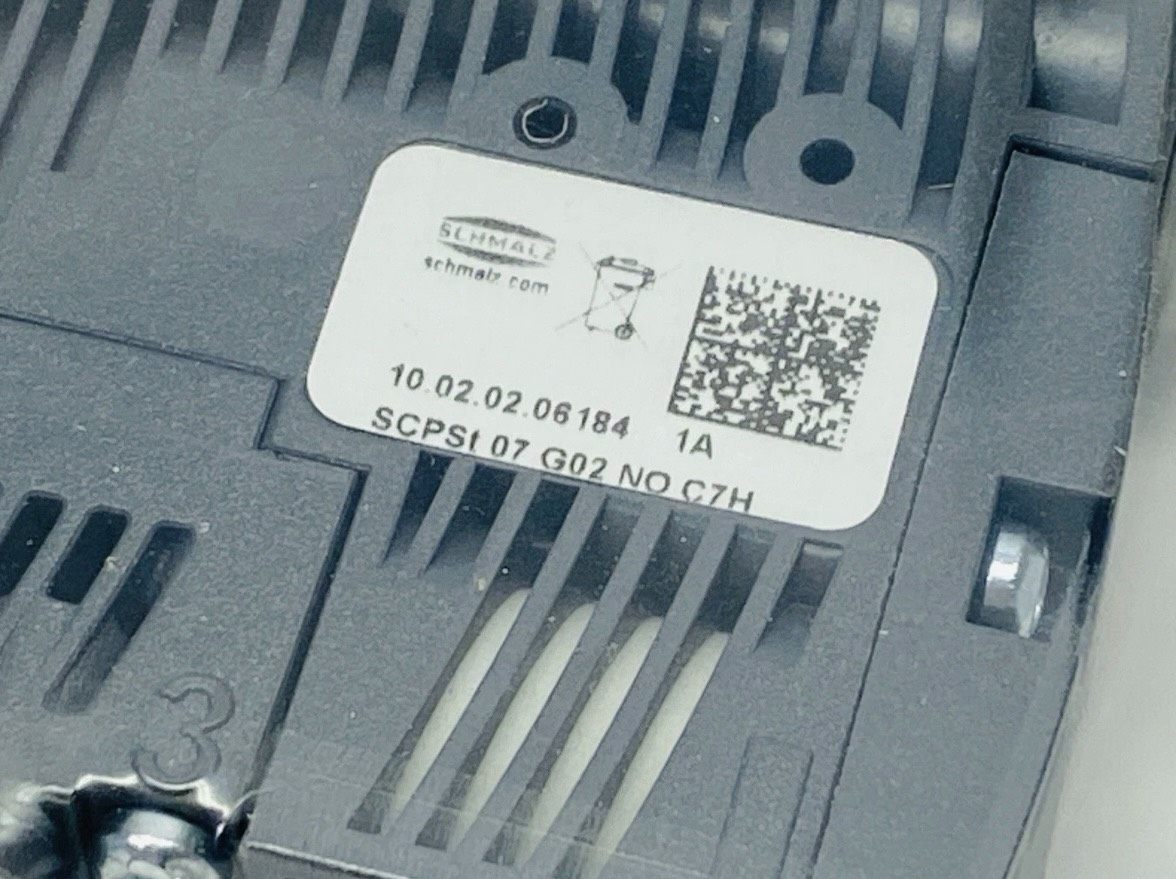 Schmalz SCPSt 07 G02 NO C7H 紧凑型真空喷射器(型号10.02.02.06184)是一款专为气动系统设计的高效真空发生装置。产品采用灰色与白色耐高压外壳,集成金属接口和精密调节按钮,顶部散热结构确保长时间稳定运行。紧凑的尺寸设计使其适用于空间受限的工业环境,侧面端口布局优化气路连接,提升系统集成效率。