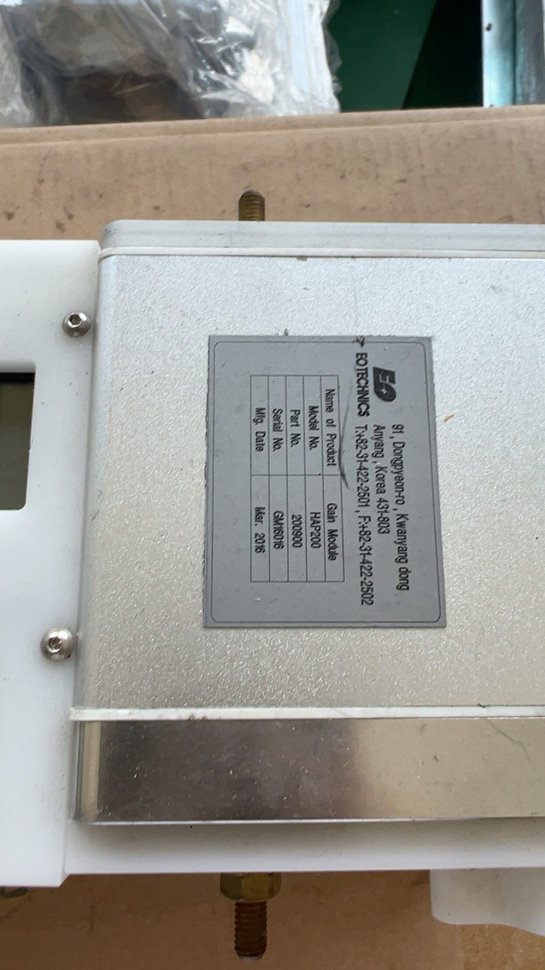 由于产品标签信息未完全清晰显示,具体技术参数请以实际产品说明书或供应商提供的资料为准。一般EO模块可能涉及的参数包括工作电压、输出信号类型、响应时间、检测范围等,建议联系供应商获取详细参数信息。