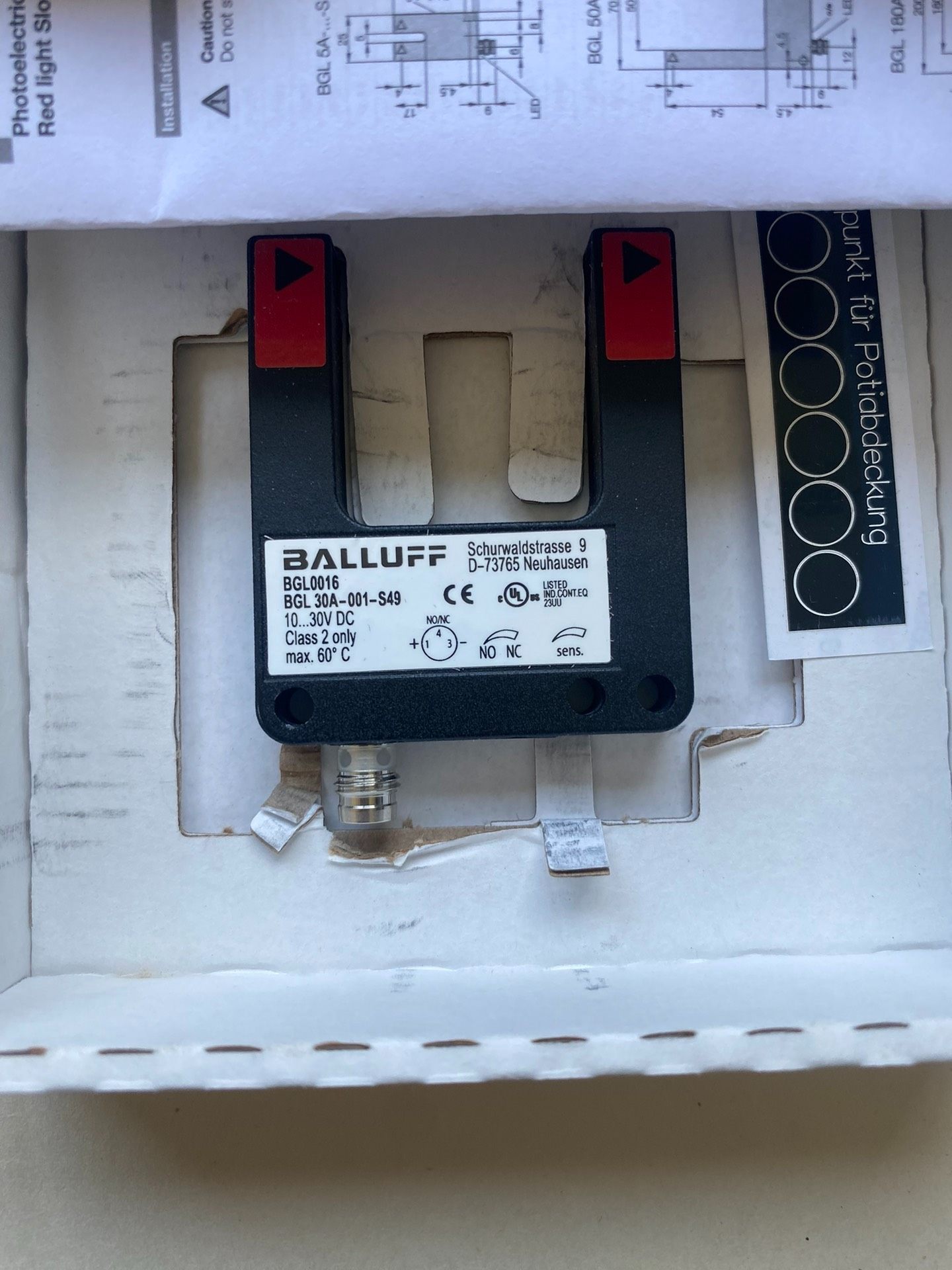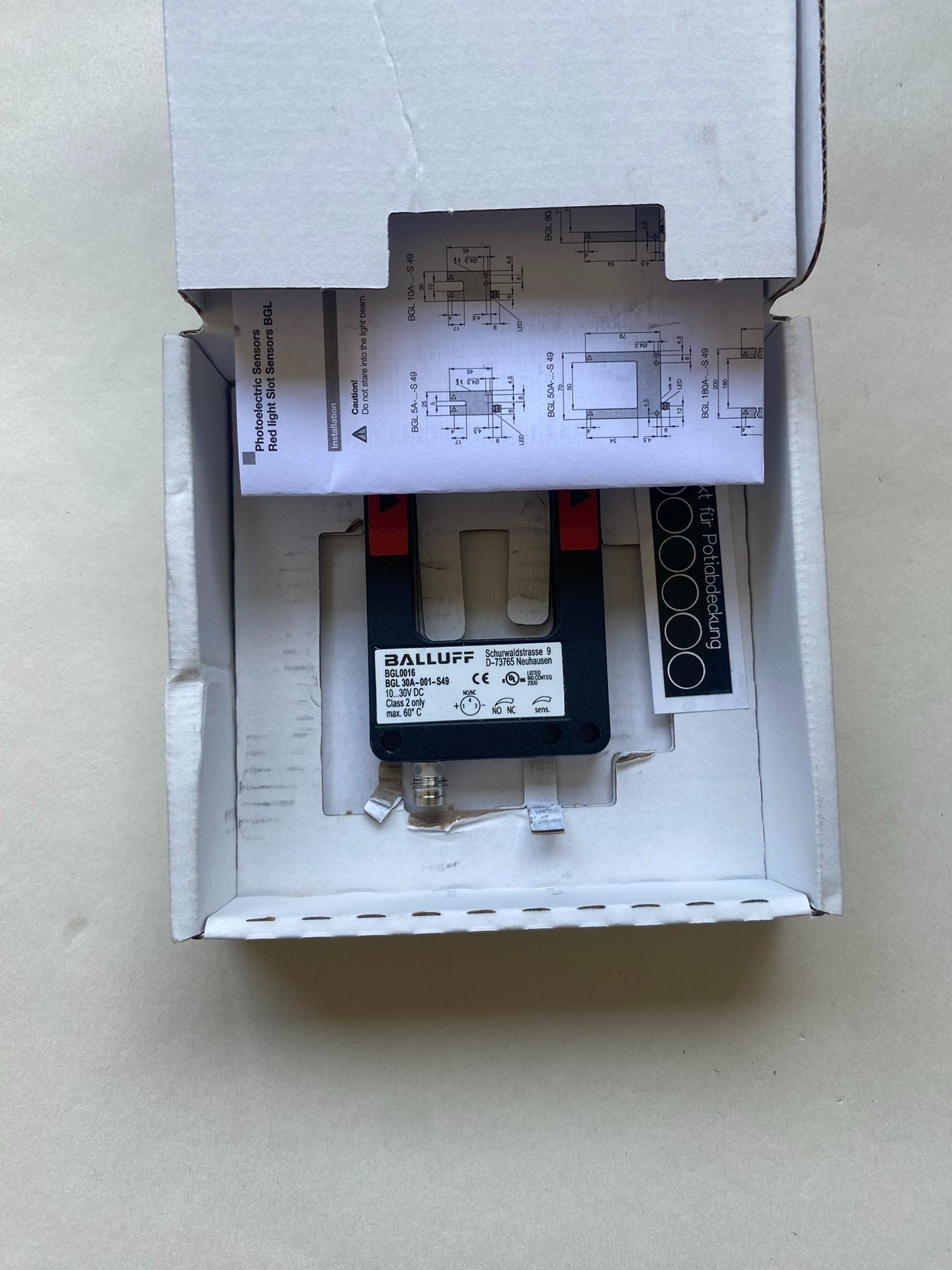 本产品为全新原装巴鲁夫(BALLUFF)槽型光电传感器,型号BGL 30A-001-S49,属于德国进口工业级品质。产品处于未使用状态,附带原厂包装盒,支持验货,确保正品保障。