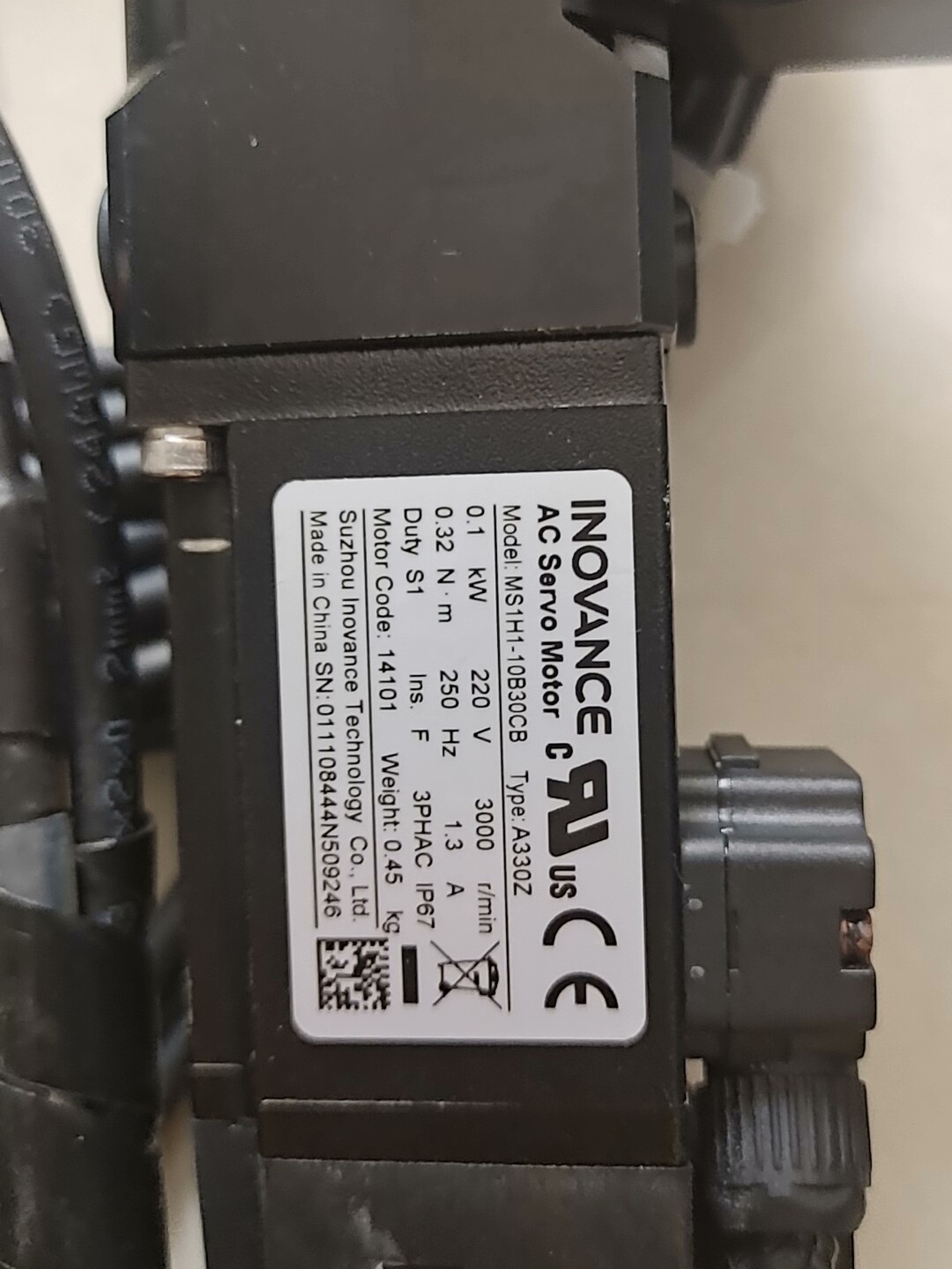 本产品为汇川品牌伺服系统拆机套装,包含1台汇川伺服驱动器SV660NS1R6I和1台伺服电机MS1H1-10B30CB-A300Z,配套连接线缆齐全。设备为正品拆机,成色如图所示,经过功能测试,确保性能稳定可靠,适用于各类工业自动化设备的精确控制场景。