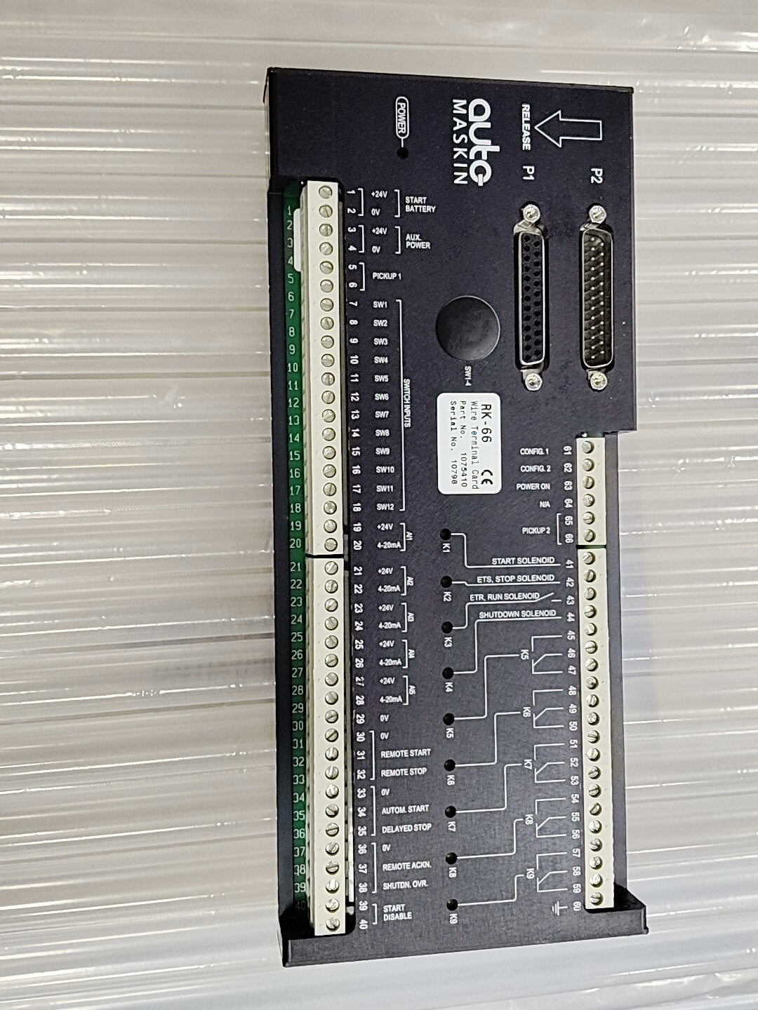 Auto Maskin RK-66 接线端子板(Part No. 1075410)是一款专为工业控制系统设计的信号与电源连接模块,具备稳定的接线性能和多样化的接口配置,适用于自动化设备中的信号传输与控制线路集成。