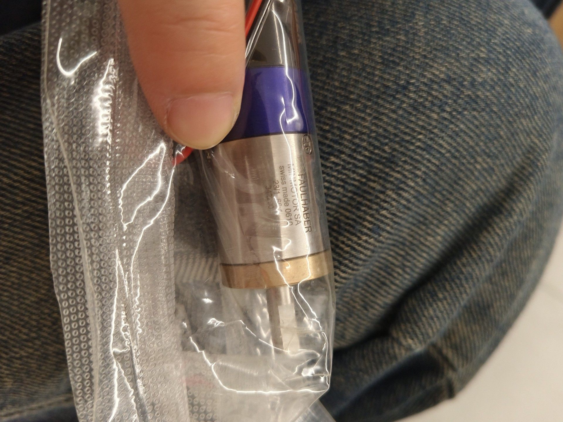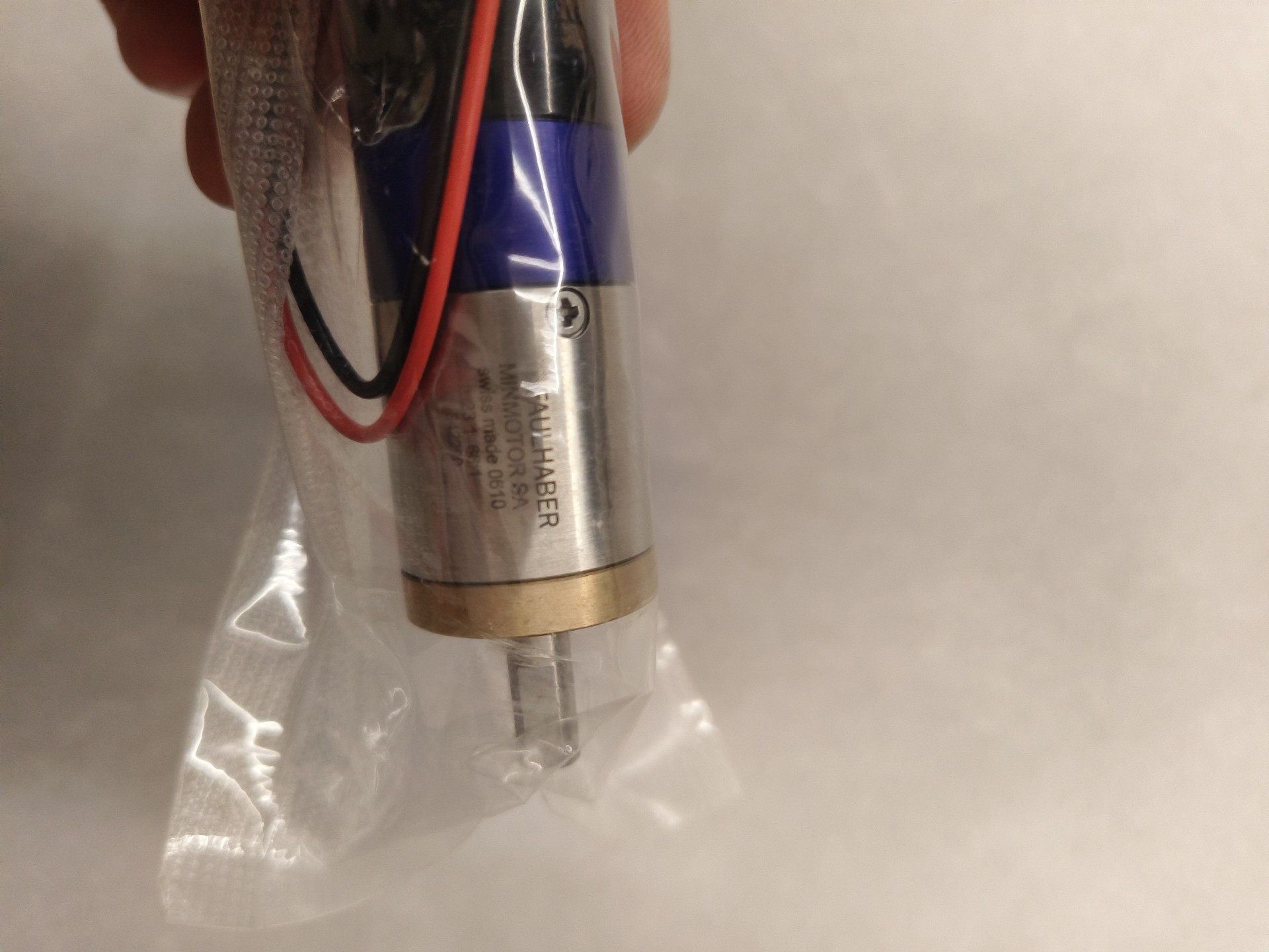 本产品为全新原装FAULHABER减速电机,型号23/1,减速比66:1,具备高精密传动性能。整体结构紧凑,上部采用银色金属外壳,中部设有蓝色标识环,下部为黑色基座,引出红黑两根导线,便于接线操作。产品封装于透明塑料袋中,确保运输和存储过程中的洁净与安全。