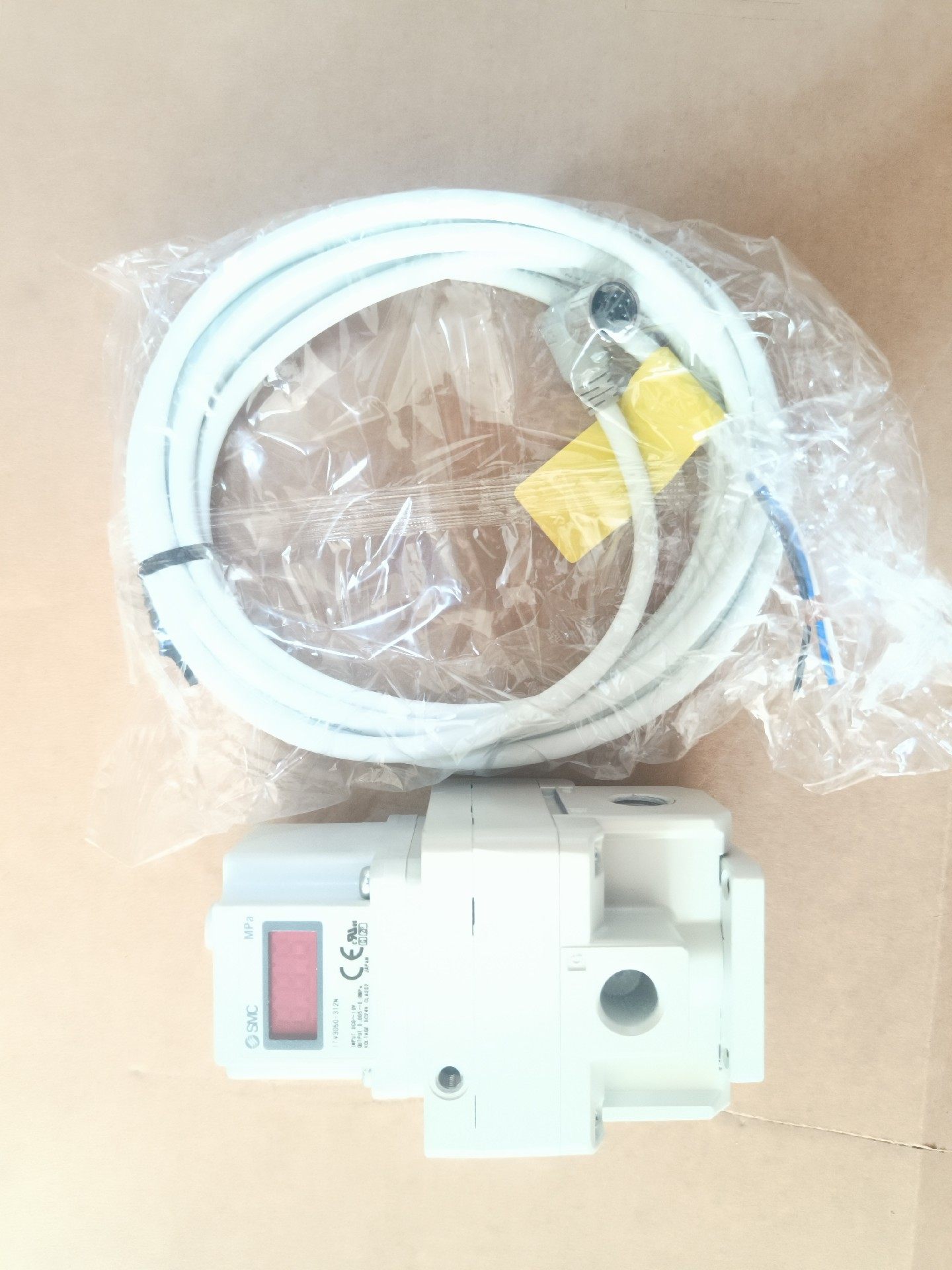 SMC电气比例阀ITV3050-312N是一款高性能气动控制元件,专为自动化系统中精确气压调节设计。产品采用白色塑料外壳,结构紧凑,正面配备红色数字显示屏,可实时显示输出压力值(单位MPa),便于直观监控和调试。