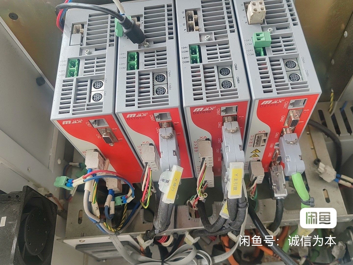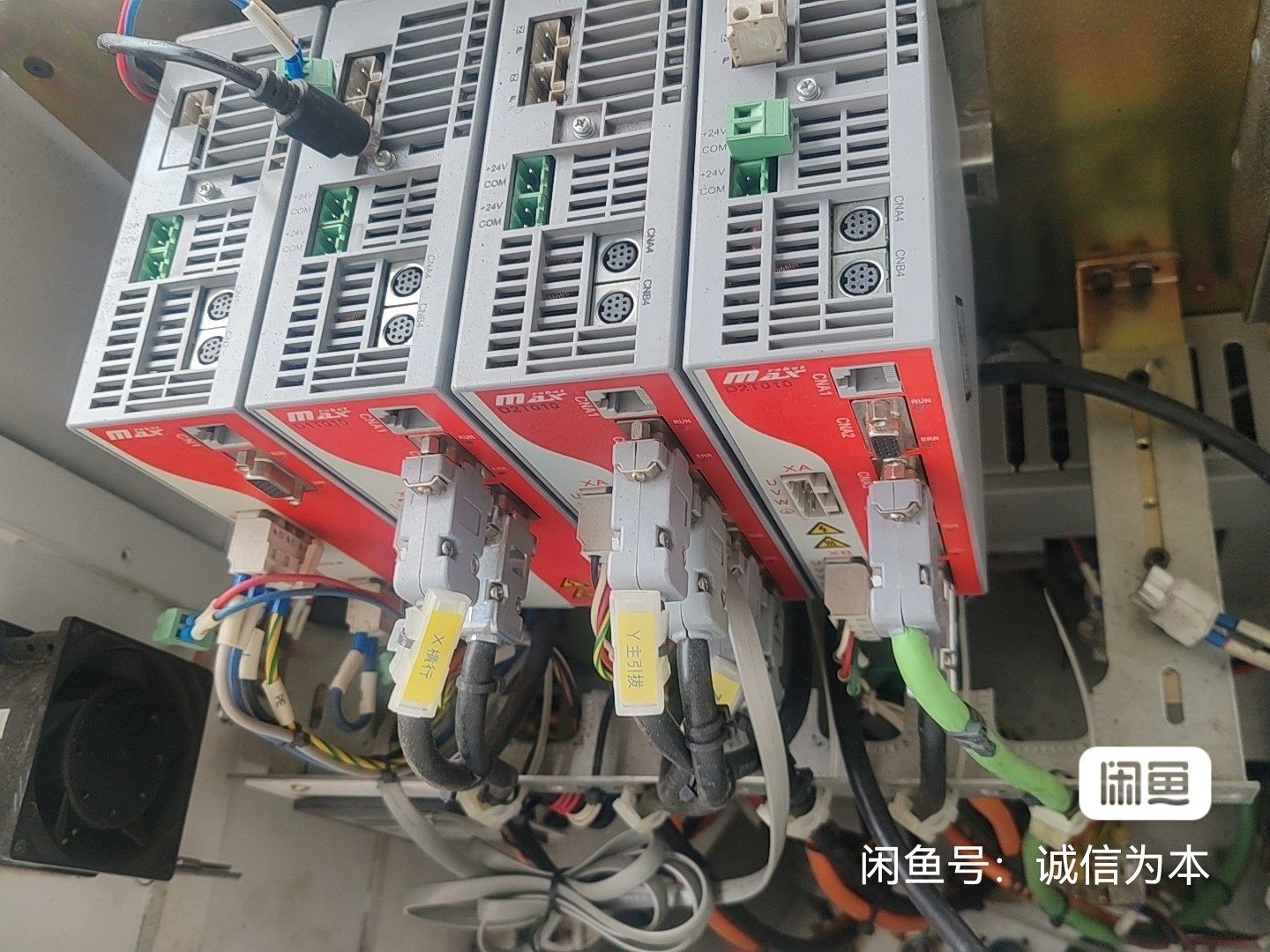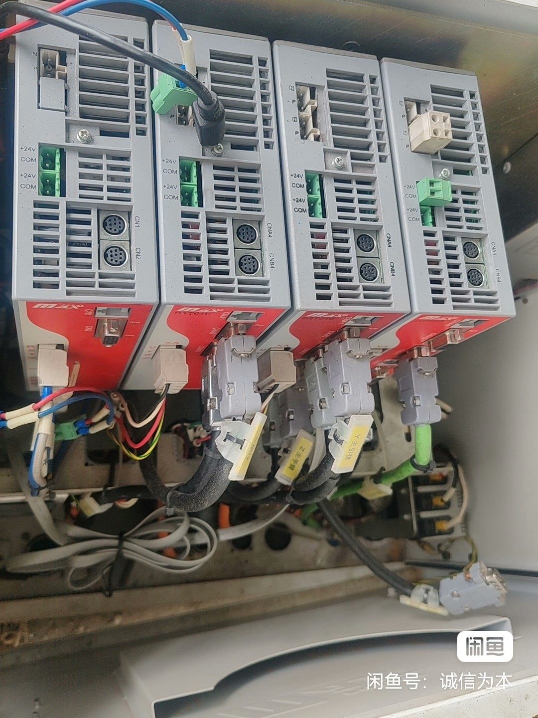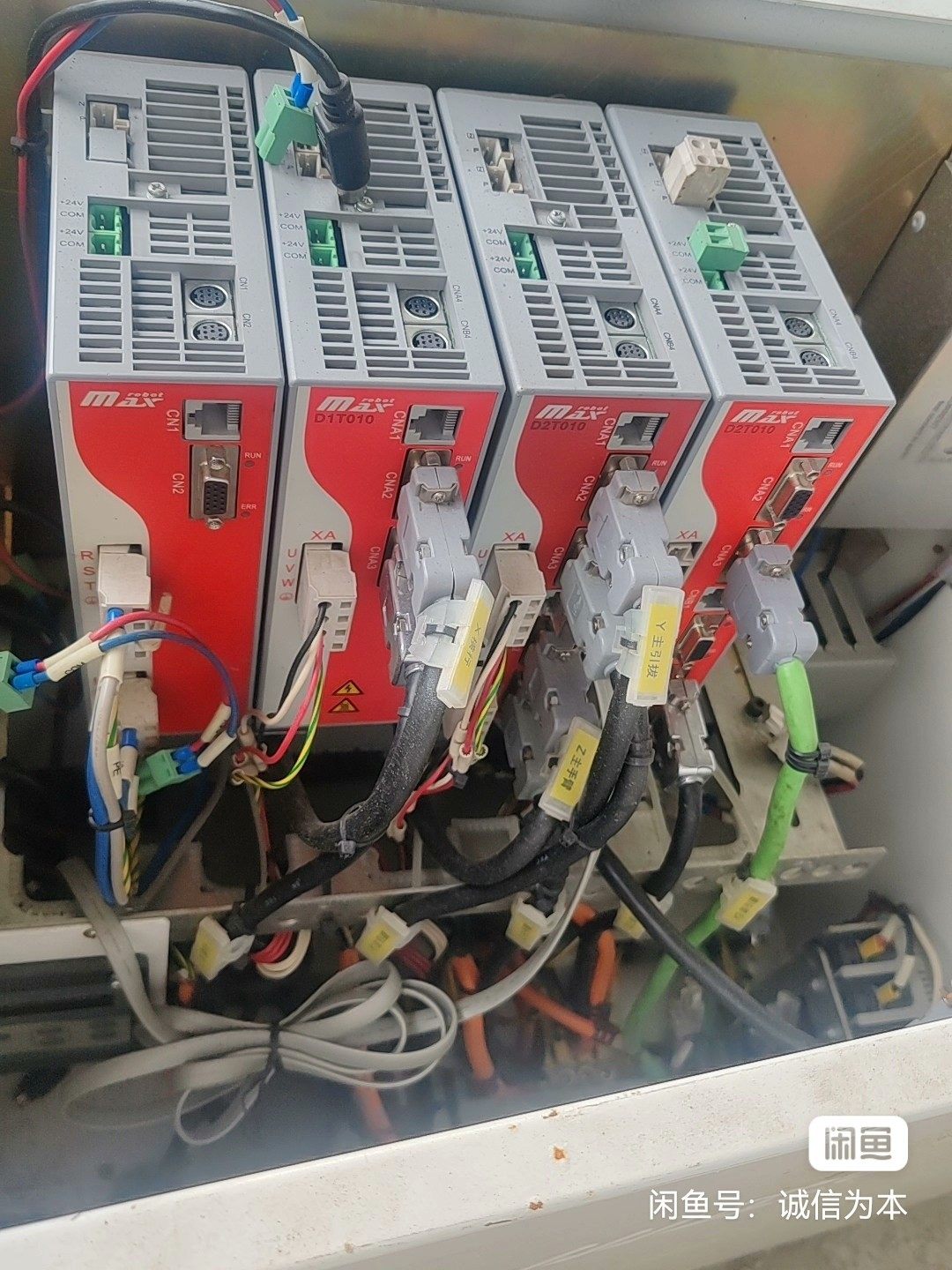 本产品为MAX品牌伺服驱动器,型号IS700R0T050I,实物拍摄,均为拆机件,已妥善包装。设备整体成色较新,外观无明显破损,接口完好,连接线束齐全,适用于各类工业自动化设备中伺服电机的驱动与控制。配电柜内共包含4台该型号驱动器,可单台出售(每台300元),也可整柜出售。
