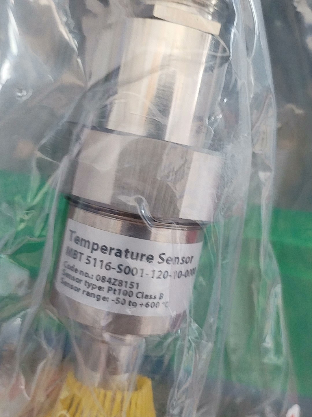 Danfoss MBT5116 084Z8151 温度传感器是一款全新原装工业级温度检测设备,专为精准测量工业环境中的温度参数设计。产品采用高品质金属探头结构,配备黄色防护网以保护敏感元件,整体封装于透明塑料袋中,标签信息完整清晰,确保产品 authenticity 与可靠性。
