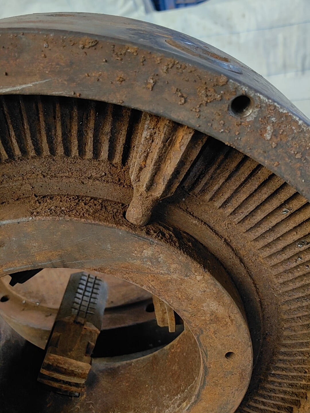 - 外观状况:表面大面积生锈,金属部分氧化严重,卡爪及主体存在明显磨损痕迹,部分螺栓可能存在锈蚀或滑丝情况。