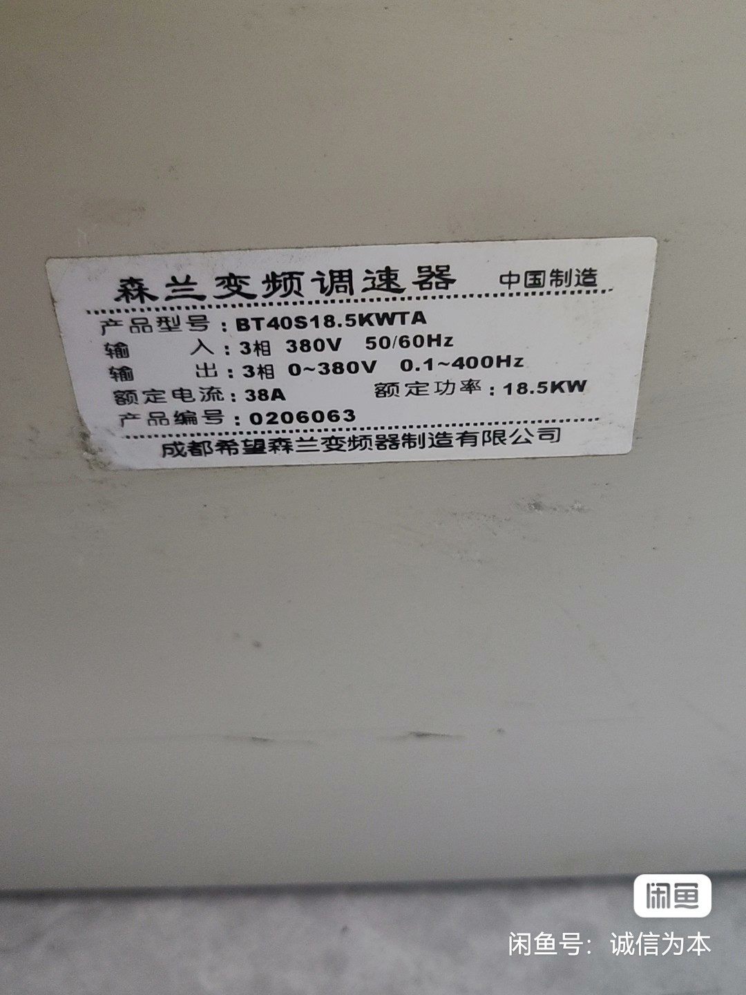 本产品为森兰(SENLAN)品牌BT40S系列变频器,型号BT40S18.5KWTE,是一款正常拆机下来的工业级变频器,功能完好,成色较新,适合各类工业电机调速控制场景。
