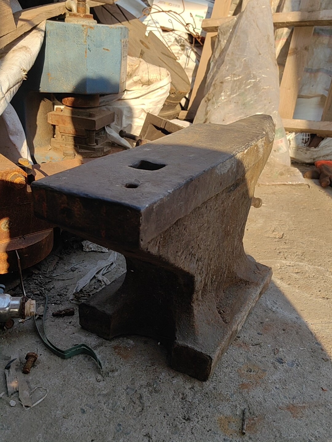 本产品为传统老铁砧子,又称牛角砧、羊角砧,是铁匠铺及金属加工领域的核心工具之一。整体采用优质铸铁材质,经过长期使用形成独特的包浆与锈迹,结构稳固,承重性能优异,适用于各类金属材料的锻打、塑形及修复作业。