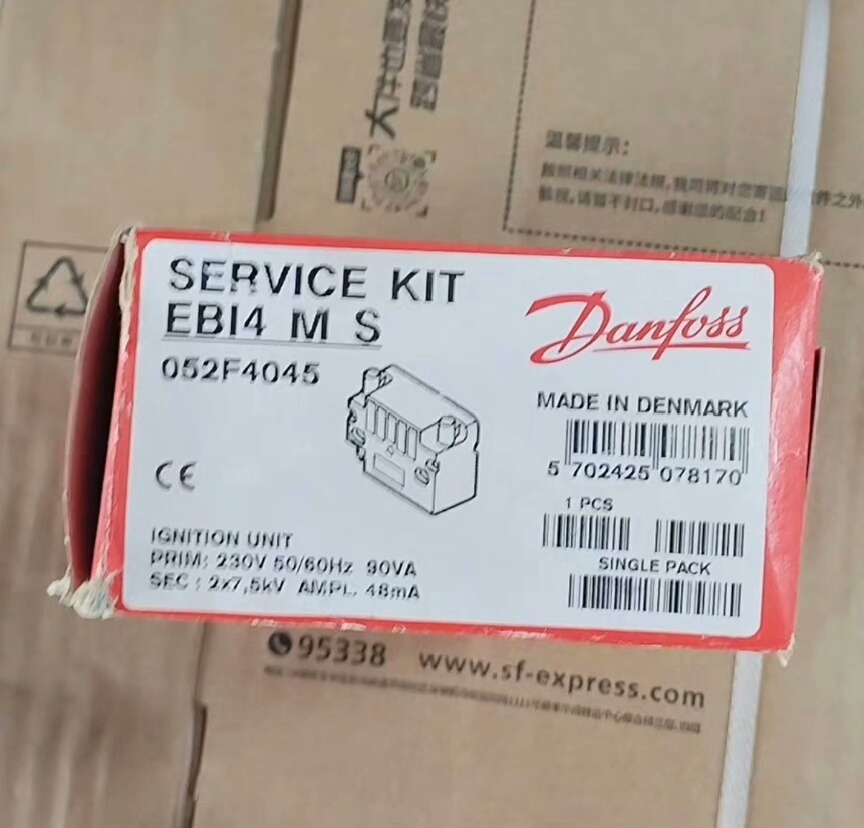 Danfoss(丹佛斯)EBI4 M S点火变压器(型号052F4045)是一款丹麦原装进口的高性能工业点火设备,专为需要稳定高压点火的燃烧系统设计。产品采用紧凑设计,黑色外壳搭配清晰标识标签,确保安装与维护便捷,全新原厂品质保证可靠运行。