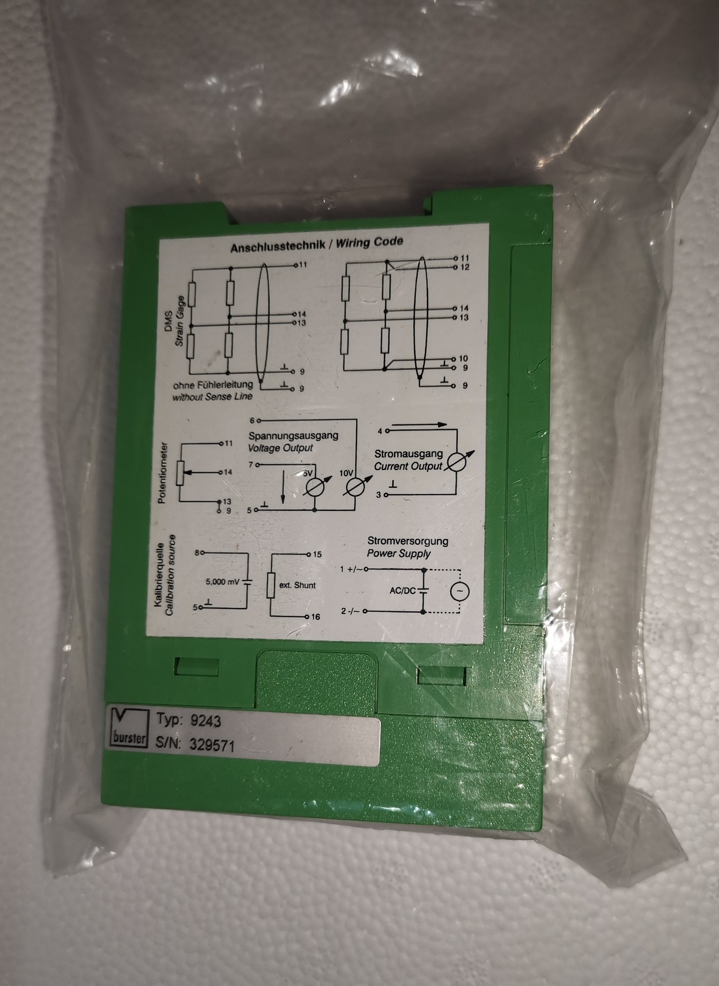 Burster波司特9243放大器模块,全新原装无包装。德国制造,质量保证。适合各种工业应用,未使用过,功能完好。